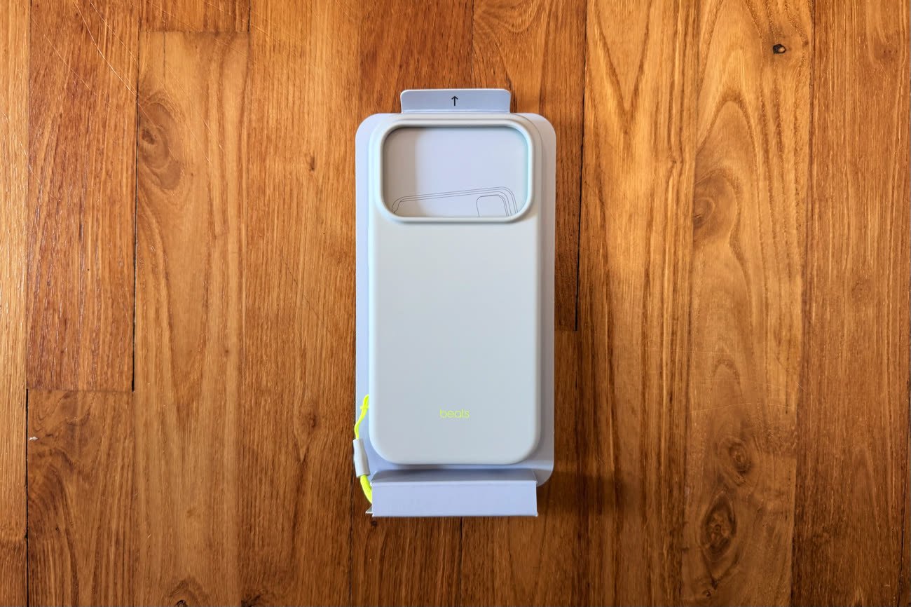 J’ai testé pendant une semaine la version gris gypse qui est un gris assez beige. Beats propose aussi du bleu basalte et du gris granite très neutres, et à l’inverse du rose quartz bien vif. Il y en a donc pour tous les goûts. Avec mon iPhone 17 Pro orange, le gris-beige colle assez bien, mais je suis moins sûr pour le vert fluo de la lanière.