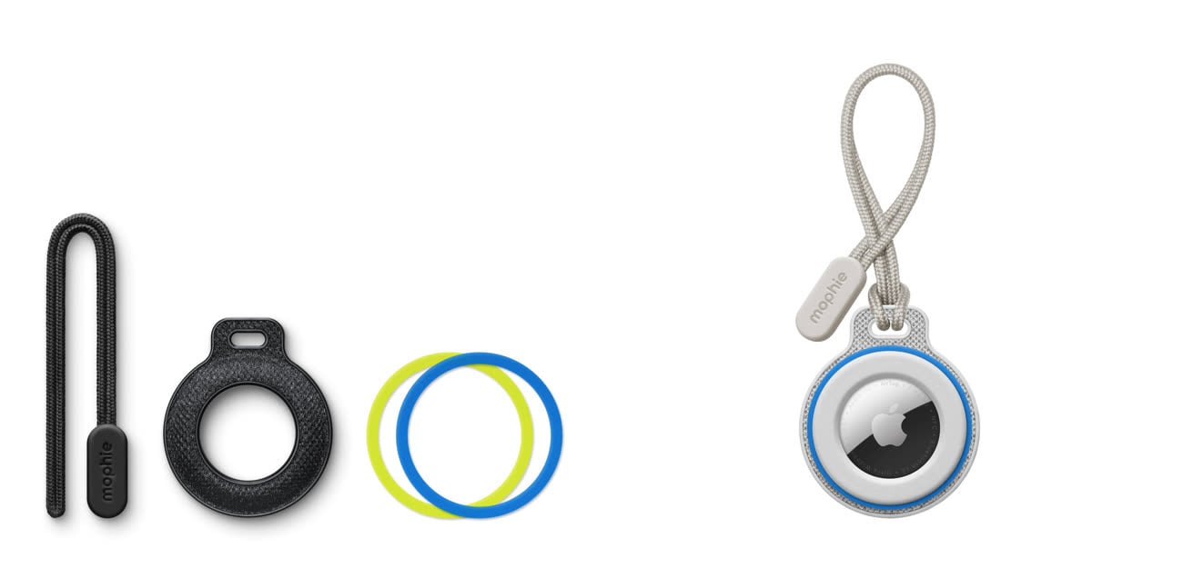 Apple commercialise en exclusivité un étui avec boucle pour AirTag de mophie à 16,95 €. L’étui est en maille et l’installation se fait par simple rotation. Des rubans d’identification de couleur sont inclus. Il est disponible en noir ou gris. Le lot de quatre est vendu 54,95 €.