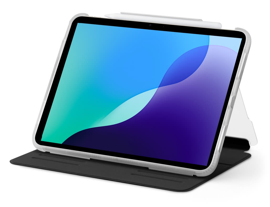 Enfin, Apple vend des nouvelles coques pour les iPad. La coque Tint FlexFolio de Tech21 coûte 59,95 €. Elle est disponible pour les iPad Air 11", iPad Air 13", iPad Pro 11" et iPad Pro 13". Le matériau FlexShock™ « absorbe les chocs et remodèle la structure de votre coque ». Elle offre un support multi-positions réglable pour passer facilement du mode portrait au mode paysage et au mode dessin. Un support pour Apple Pencil est intégré.