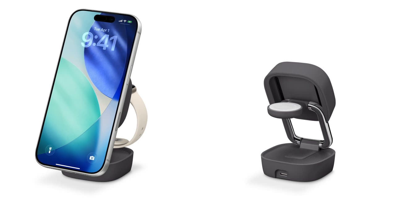La station de recharge 2-en-1 aimantée et pliable UltraCharge Pro de Belkin est vendue 149 €. Elle recharge un iPhone jusqu’à 25 W et une Apple Watch rapidement. Un câble USB-C de 1,5 m et un adaptateur secteur 45 W sont inclus. Elle est disponible en deux coloris (sable ou gris).