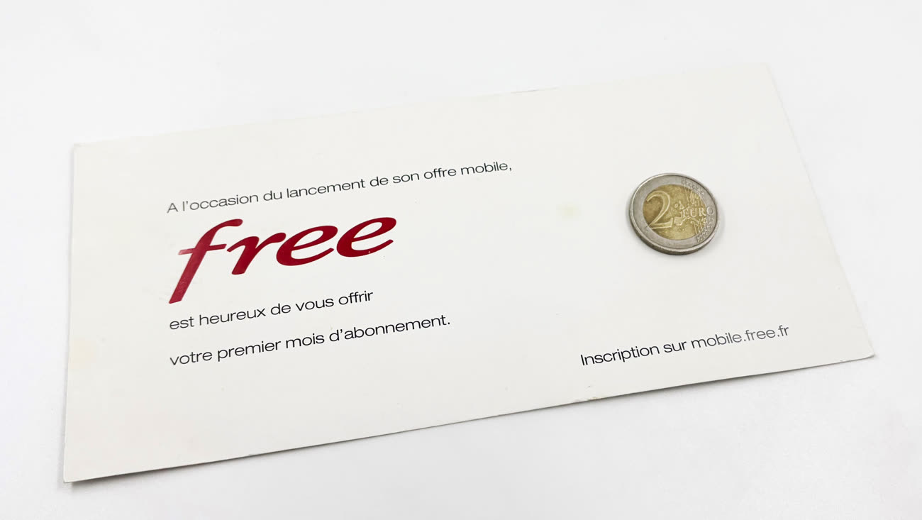 Lors de sa dernière révolution mobile, Free avait soudoyé les journalistes avec une pièce de 2 €, un abonnement d'un mois à Free Mobile. Image iGeneration.