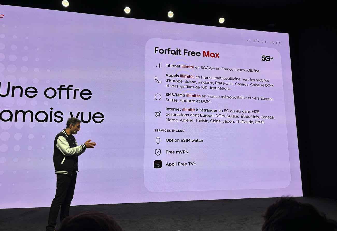 Free Max, c’est son nom, est le premier forfait mobile à inclure de l’internet illimité en France et dans plus de 135 destinations à travers le monde, selon le trublion. Il est sans engagement et il coûte 29,99 €/mois ou bien 19,99 €/mois pour les abonnés Freebox.
