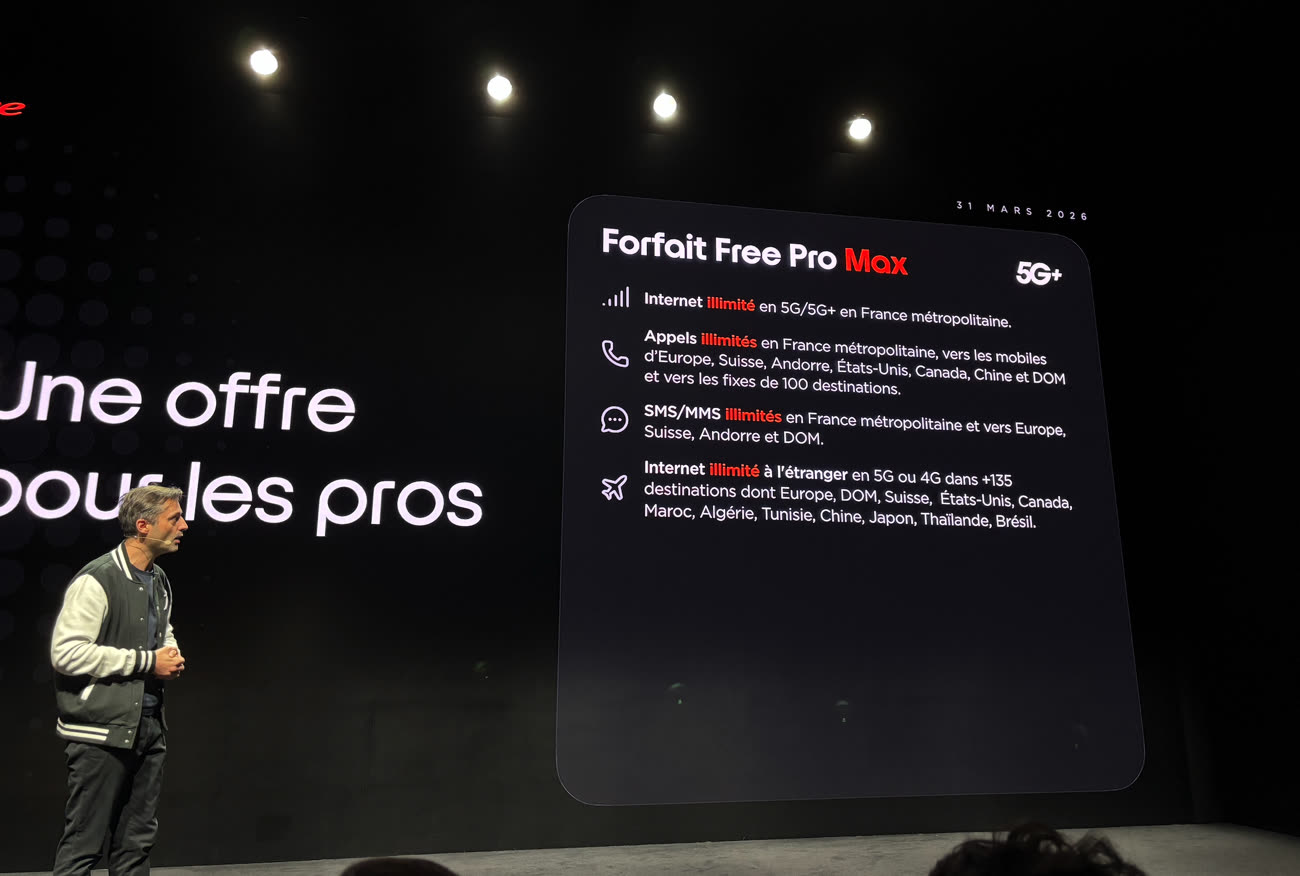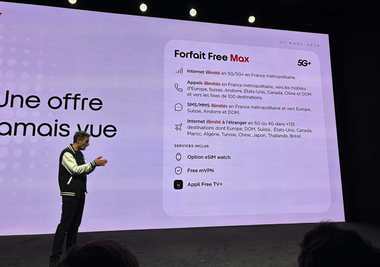 Free Max inclut également les appels en illimité depuis la France vers les mobiles d'Europe, de Suisse, d’Andorre, en complément des appels illimités en France métropolitaine vers les mobiles de France, des États-Unis, du Canada, de Chine, des DOM et vers les fixes de France et de 100 destinations. Logiquement, le nouveau forfait comprend les autres services classiques de Free Mobile, comme le VPN, l’application Free TV (l’offre basique) et l’eSIM pour Apple Watch. Outre le grand public, l'opérateur vise aussi les professionnels avec l'offre Free Pro Max similaire à 29,99 €/mois.