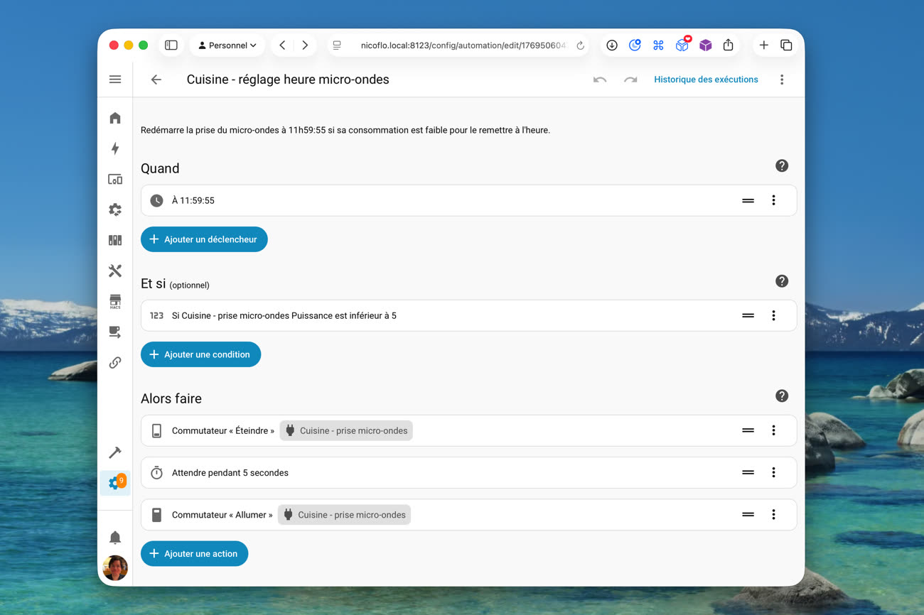 Mise à jour à 17h21 : vous êtes plusieurs à faire la remarque que débrancher/rebrancher un micro-ondes tous les jours n’est pas nécessairement une bonne idée pour l’électronique embarquée. Par sécurité, mieux vaut sans doute déclencher l’automatisation une seule fois par semaine, par exemple.