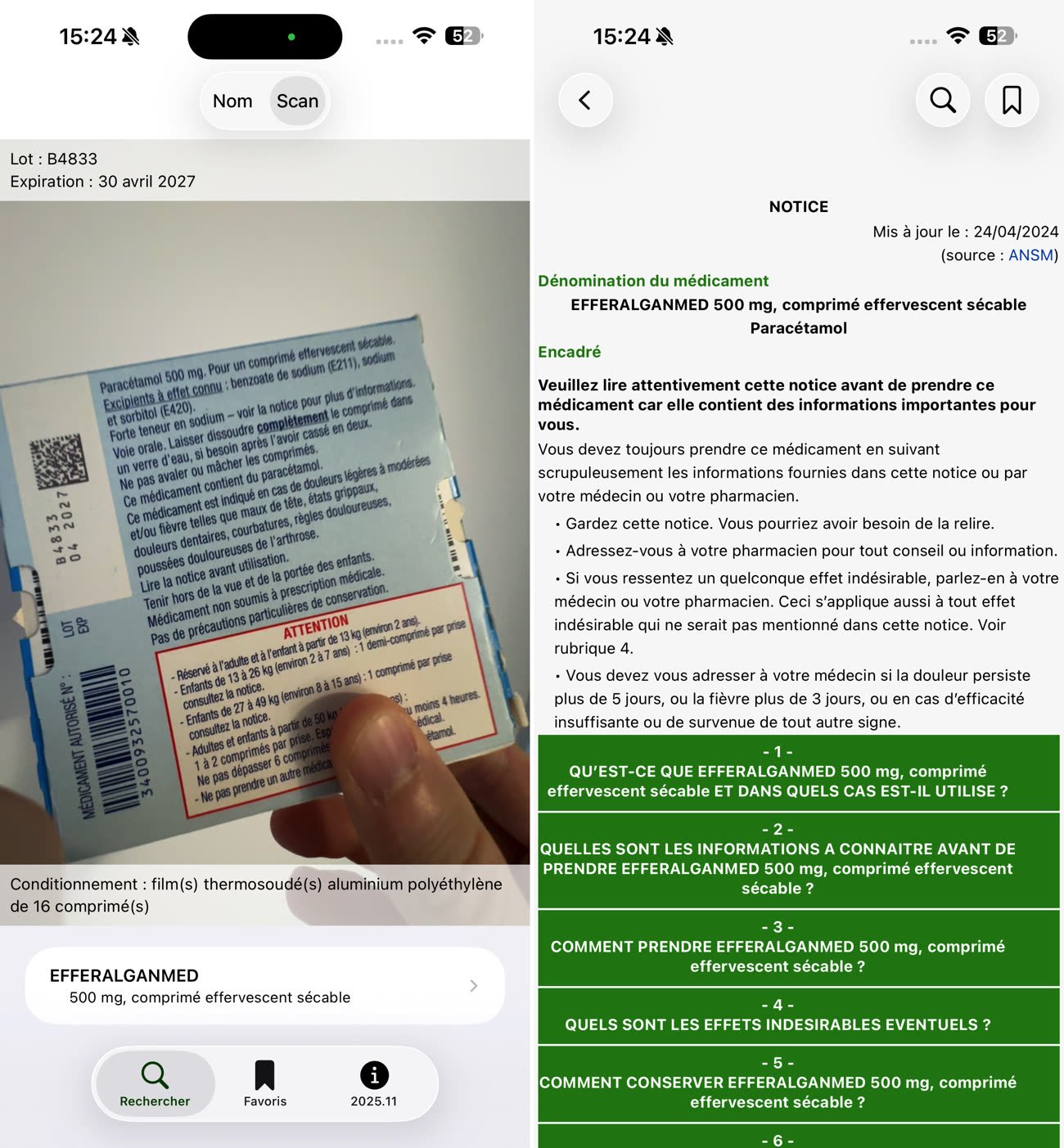 La mise à jour apporte une recherche par nom plus souple, comprenant les approximations phonétiques ou les recherches par préfixe. L’app a gagné des effets de transparence et un historique sur la page d’accueil. Il est désormais possible de faire des recherches dans les notices affichées, ce qui n’était pas le cas auparavant.
