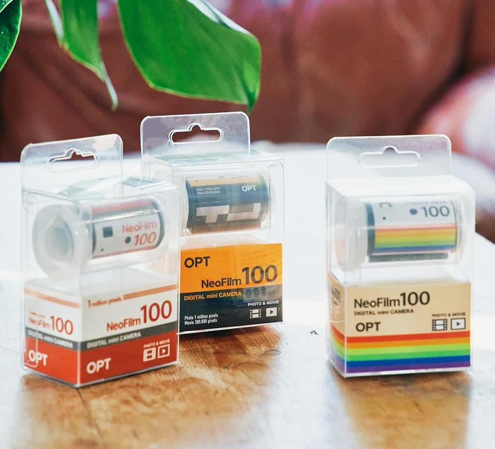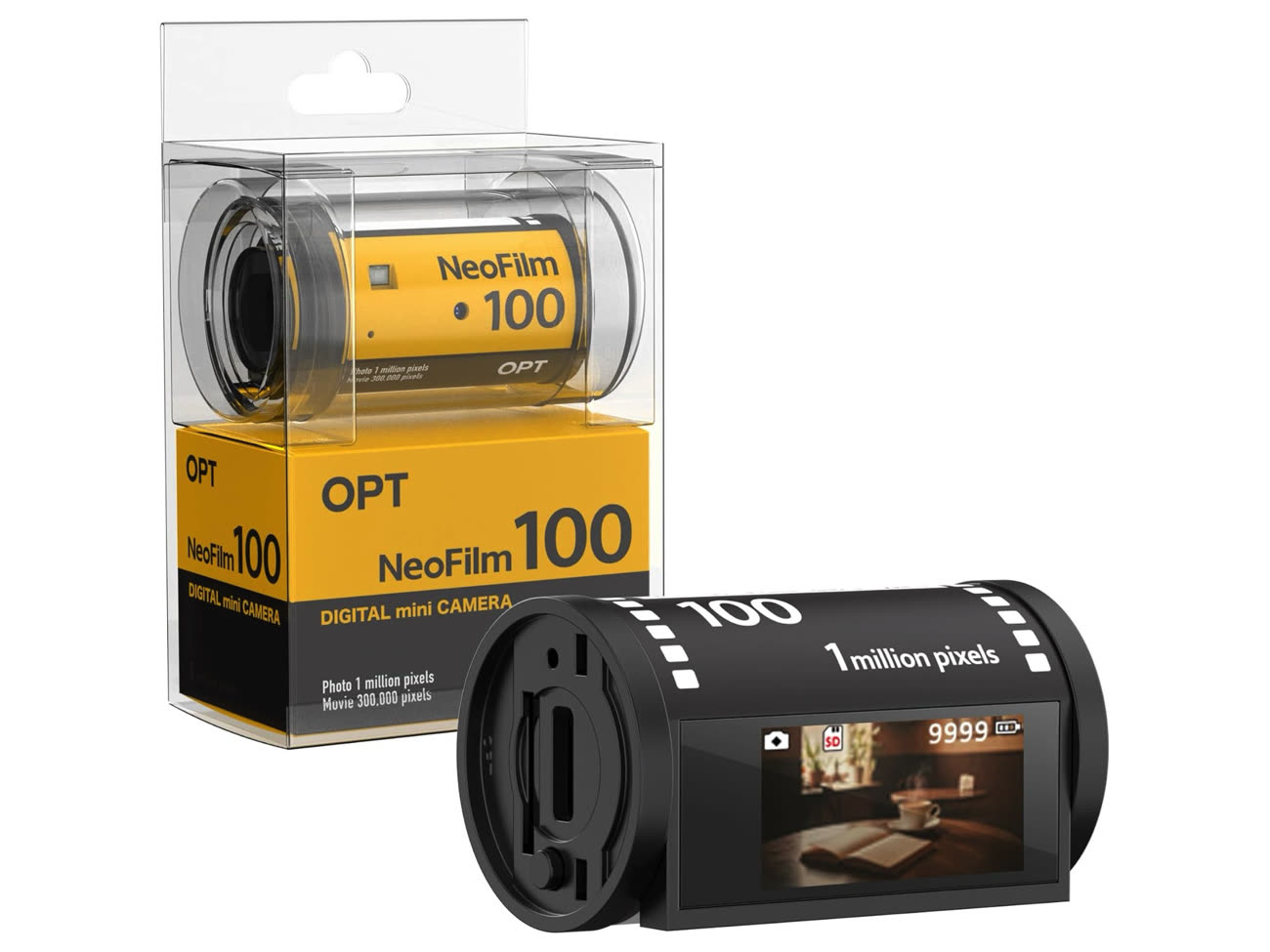 Avec l'évolution de la taille des capteurs et de l'électronique, les appareils photo prennent parfois des voies… étonnantes. L'Opti100 NeoFilm, un gadget vendu pour environ 6 000 ¥ au Japon (à peu près près 33 €) est en effet en forme de pellicules. Dans la même veine que le boîtier pour SSD externe dont nous avons parlé récemment, c'est un reliquat du passé : les pellicules ne sont plus utilisées que de façon marginale par les adeptes des photos argentiques.