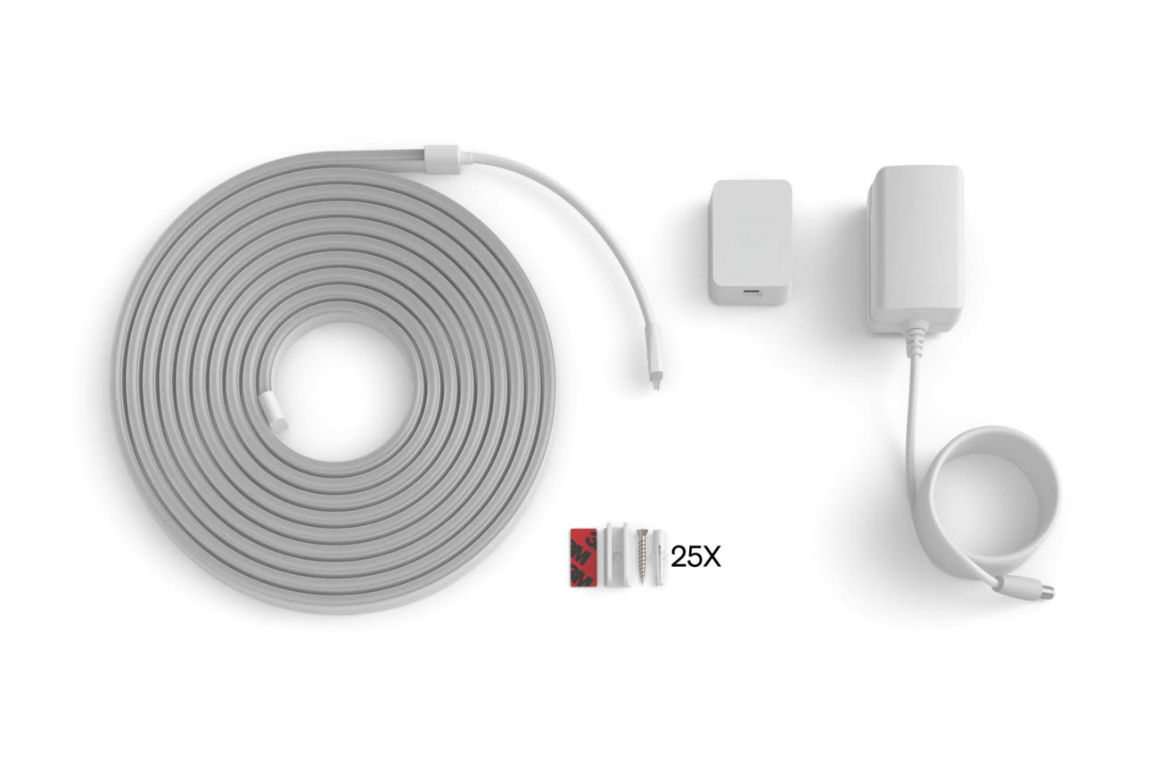Sur le plan de la connectivité, Hue met en avant la compatibilité avec Matter, tout en notant qu’un pont de connexion est nécessaire. De fait, malgré le nom « Essential », ce ruban n’est pas compatible nativement avec le standard, faute de Thread. Il se contente du Zigbee et devra ainsi être contrôlé par le biais d’un Bridge ou du nouveau Bridge Pro. C’est dommage, mais sans doute compréhensible quand on pense que le RGBIC n’est pas encore géré par Matter. Pour exploiter pleinement le produit, il faudra sans doute obligatoirement rester dans l’écosystème Hue.