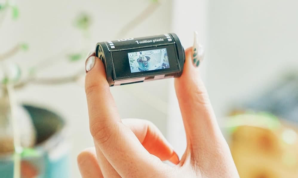 Le boîtier de 25 grammes (sans la carte microSD) existe en trois couleurs, pour s'approcher des différentes pellicules qu'il était possible d'acheter au 20e siècle. Il mesure 47 x 25 mm et intègre une batterie de 230 mAh. La fiche technique donne une autonomie de 60 minutes.