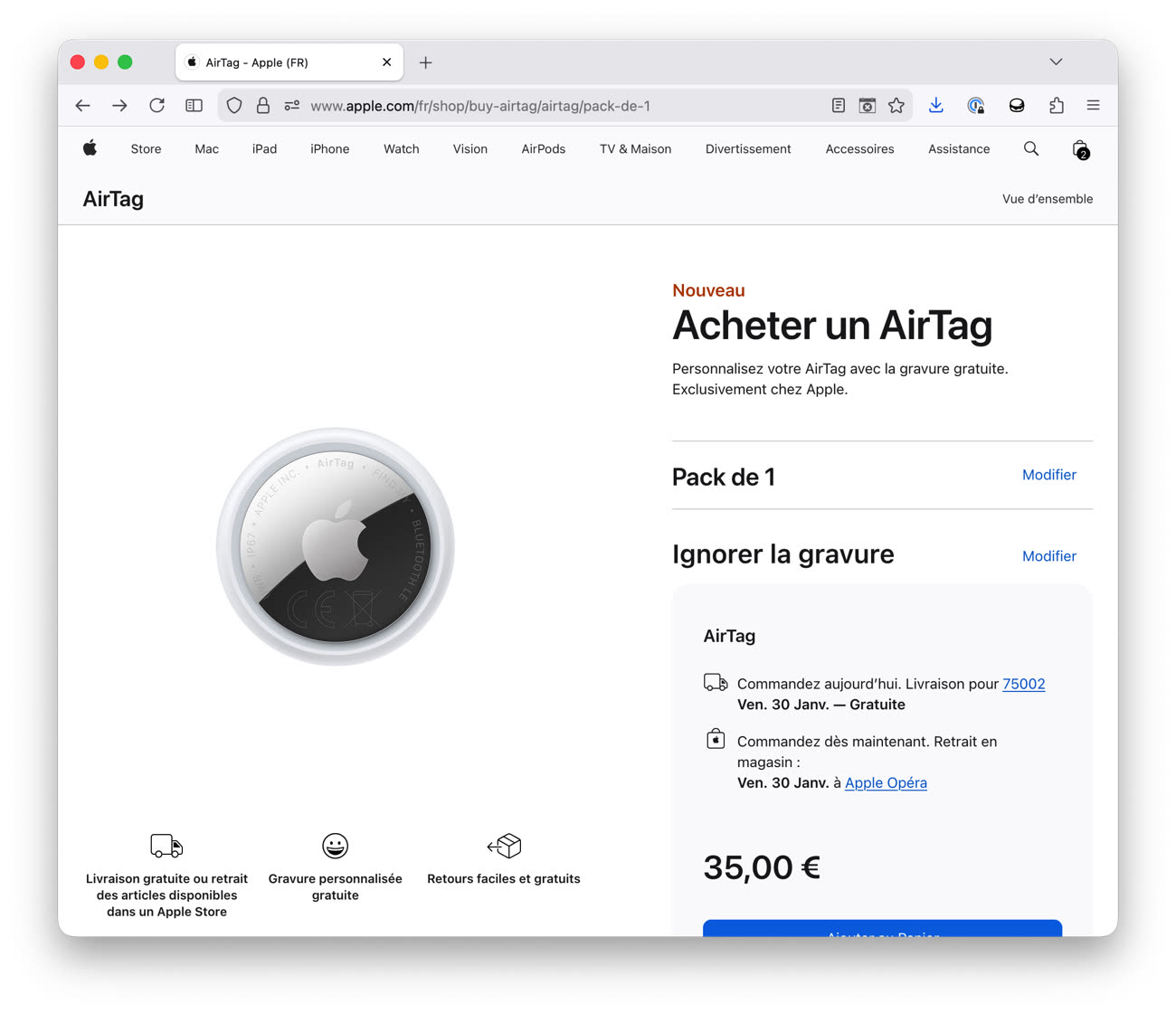 L’AirTag 2 n’est pas encore commercialisé chez les revendeurs, mais ce n’est plus qu’une question de jours. On s’attend à ce qu’ils distinguent le nouveau modèle avec la mention « 2e génération » ou « nouveau ». Amazon, la Fnac et compagnie pourraient aussi affubler l’AirTag 1 de la mention « 2021 » ou « ancien », le temps d'écouleur leurs stocks.