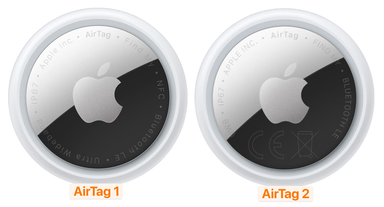 Vous avez déballé plein d’AirTags et vous vous demandez maintenant à quelle génération ils appartiennent ? Vous pouvez le savoir en observant le texte inscrit dessus, sur la partie en aluminium. Les mentions sur l’AirTag 1 sont inscrites en minuscules, alors que celles sur l’AirTag 2 sont toutes en majuscules.