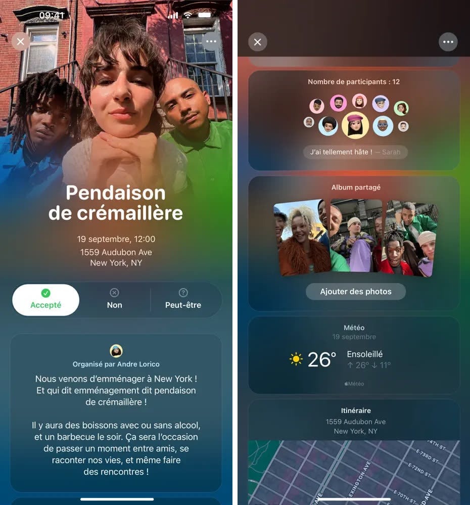 Cupertino a peaufiné son app depuis le lancement grâce à plusieurs mises à jour. On a vu arriver une synchronisation du clavier ou une prise en charge de Liquid Glass. Récemment, l’app a gagné de nouveaux arrière-plans pour les fêtes de fin d’année. Elle est gratuite, mais nécessite d’avoir iCloud+ pour créer des invitations. Il faut un iPhone sous iOS 18 pour la faire fonctionner.