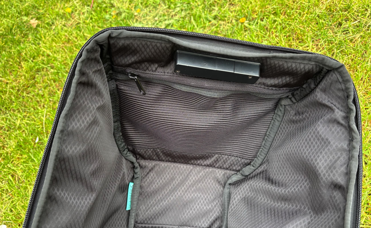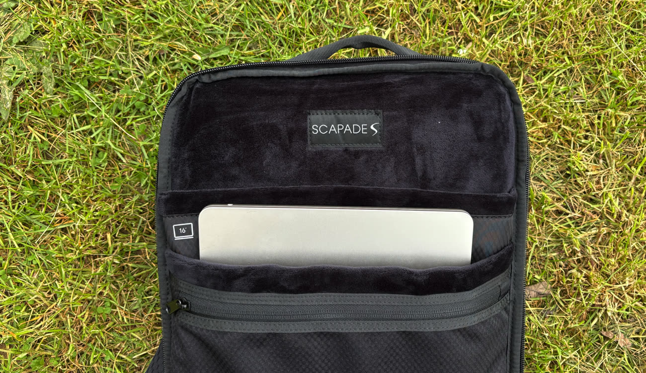 En interne, on trouve un emplacement pour un PC portable jusqu'à 16 pouces, qui accepte des modèles assez épais. Juste devant, un second emplacement est prévu pour un iPad jusqu'à 12,9 pouces, mais en pratique vous pourrez ranger un second ordinateur de 13 pouces, comme un MacBook Air. C'est assez pratique si vous êtes en voyage à deux : vous pourrez transporter deux ordinateurs. L'intérieur est recouvert d'un tissu de type polaire, très doux, qui évitera de rayer la coque.