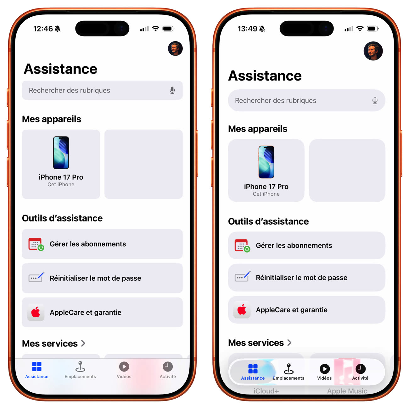 Avec le recul, ce qui surprend le plus, c’est la vitesse à laquelle les applications d’Apple adoptent les nouveaux canons graphiques d’iOS 26. Contrairement à ce que l’on pourrait imaginer, ce ne sont pas les grands ténors de la suite Apple qui ont bénéficié les premiers d’un lifting Liquid Glass. La firme a plutôt commencé par moderniser ses « petites » apps : Apple Invitation, TestFlight ou encore Assistance Apple ont été parmi les premières à inaugurer la nouvelle interface.