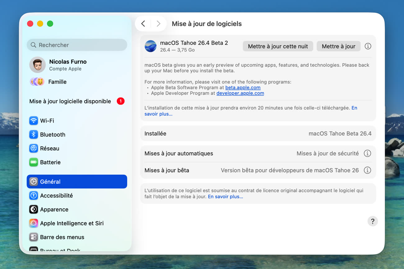 Apple diffuse ce soir la deuxième bêta de tous ses OS 26.4, une semaine seulement après la précédente. Tout le monde y a droit, pas de jaloux : iOS 26.4, iPadOS 26.4, macOS 26.4, watchOS 26.4, tvOS 26.4 et même visionOS 26.4 sont proposés aux développeurs qui le souhaitent, sachant que la bêta publique devrait rapidement sortir, certainement dès demain. Comme souvent, le Mac semble un petit peu à la traîne et mon MacBook Pro ne me propose rien pour le moment, mais cela viendra vite. Mise à jour à 20h18 : et voilà, c’est disponible pour le Mac.