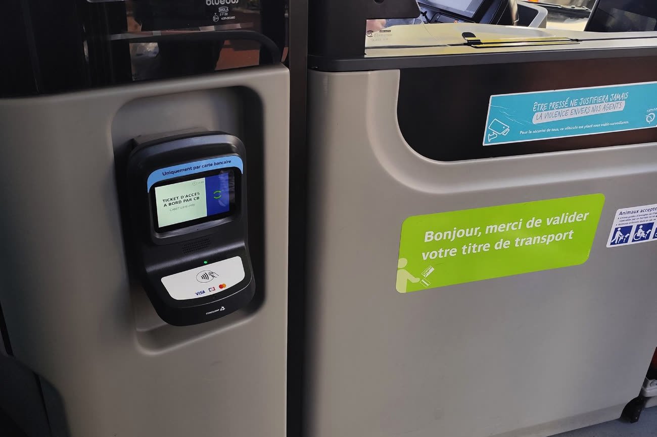 Île-de-France Mobilités avait rassemblé la presse hier, jeudi 20 novembre 2025, à l’occasion du lancement officiel de nouveaux terminaux de paiement dans les bus de la région. Pour les usagers particuliers, il est maintenant possible d’acheter un ticket à l’unité en utilisant une carte bancaire sans contact ou son iPhone ou Apple Watch grâce à Apple Pay. Le ticket est alors vendu plus cher (2,5 €) qu’en l’achetant en amont sur un passe Navigo ou son smartphone (2 €) et il ne peut pas servir pour une correspondance. Reste que c’est la première fois que l’on peut emprunter les transports en commun franciliens uniquement avec une carte de paiement et sans acheter de titre de transport.