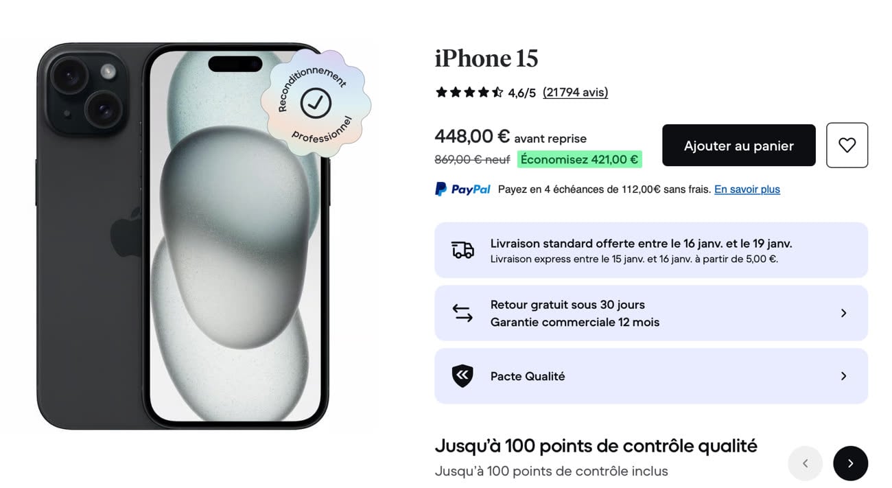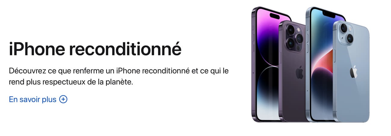 Et puis, il y a les iPhones reconditionnés. Le refurb d’Apple a toujours été un endroit relativement intéressant pour acheter des Mac à des prix intéressants. Malheureusement, c’est moins le cas avec l’iPhone. À titre d’exemple, l’offre d’Apple se résume aujourd’hui à des iPhone 15 et des iPhone 15 Pro.