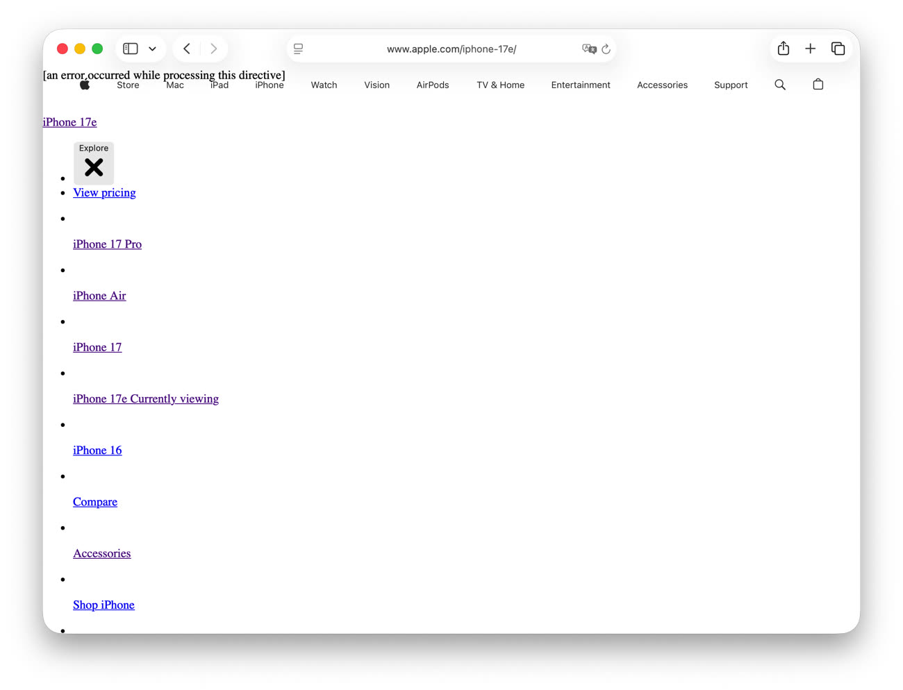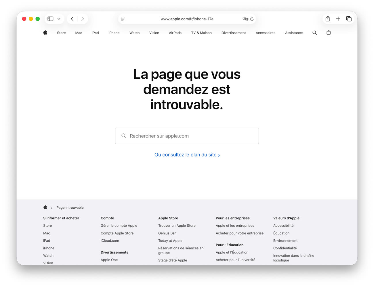 Malgré cette disparition, les communiqués de presse et vidéos présentant les deux appareils restent consultables. C’est sans nul doute un bug technique qui est à l'origine de ce retrait surprenant. Une explication qui tient d'autant plus quand on voit la page américaine de l'iPhone 17e, qui est actuellement toute cassée.