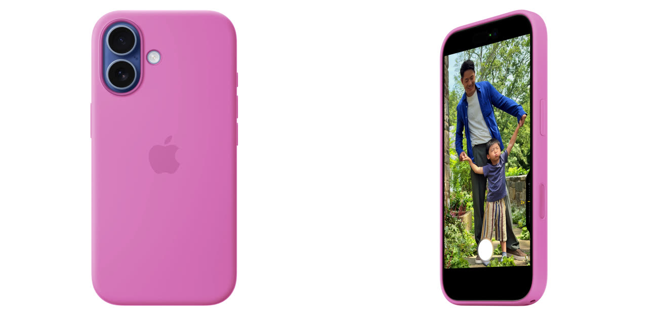 La Pomme propose son habituelle coque en silicone, qui a l’avantage d’être désormais compatible MagSafe. Elle est déclinée en 6 couleurs, à savoir noir, bleu maritime, vert ardoise, rose goyave, vanille et un nouveau rose pastel qui s’accordera bien au nouveau coloris de l’appareil. Comptez 59 € pour mettre la main dessus. Il y a également une coque transparente plus basique facturée au même prix.