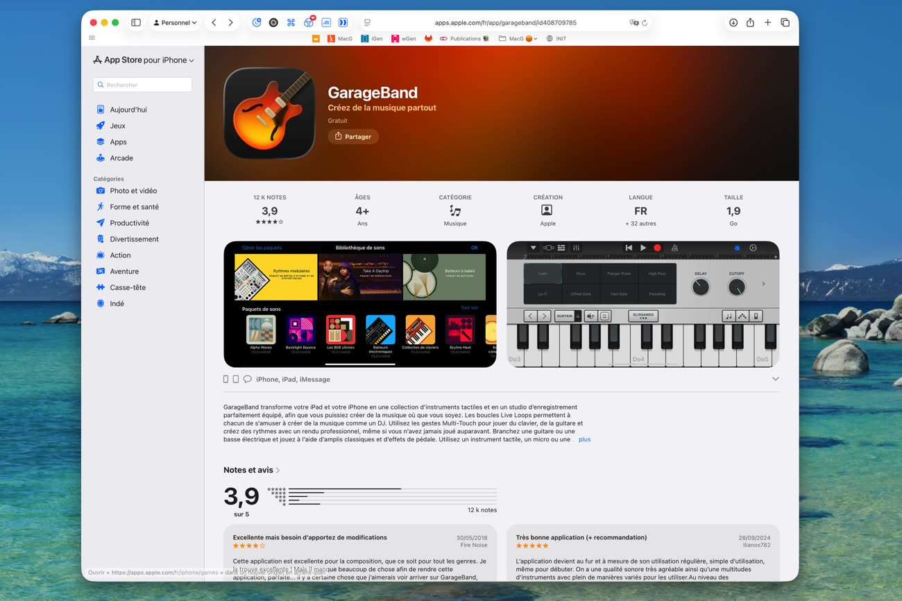 Au passage, Apple a totalement revu la présentation des fiches App Store sur le web. On a désormais une toute nouvelle présentation avec une barre latérale qui permet d’accéder à d’autres sections de sa boutique. De fait, c’est tout l’App Store qui est désormais accessible depuis n’importe quel navigateur, à l’adresse apps.apple.com/fr/.
