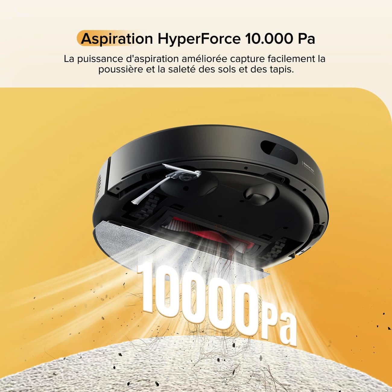 Sa puissance d'aspiration est légèrement inférieure (8 000 Pa), ce qui reste largement suffisant pour sols durs et tapis fins. C'est le meilleur rapport qualité/prix/confort du moment pour qui veut oublier la corvée de ménage pendant plus d'un mois.