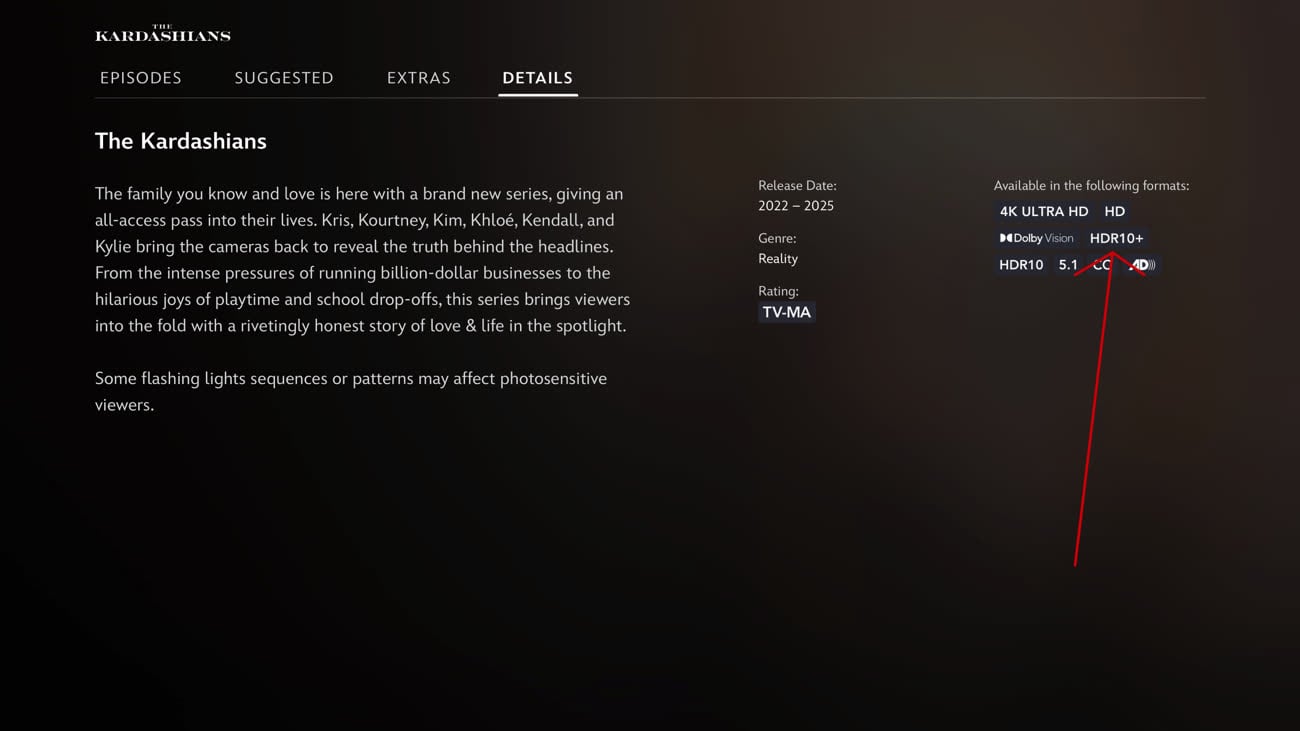 Disney+ indique déjà la présence du HDR10+ sur Apple TV dans certains cas. Image FlatPanelsHD.