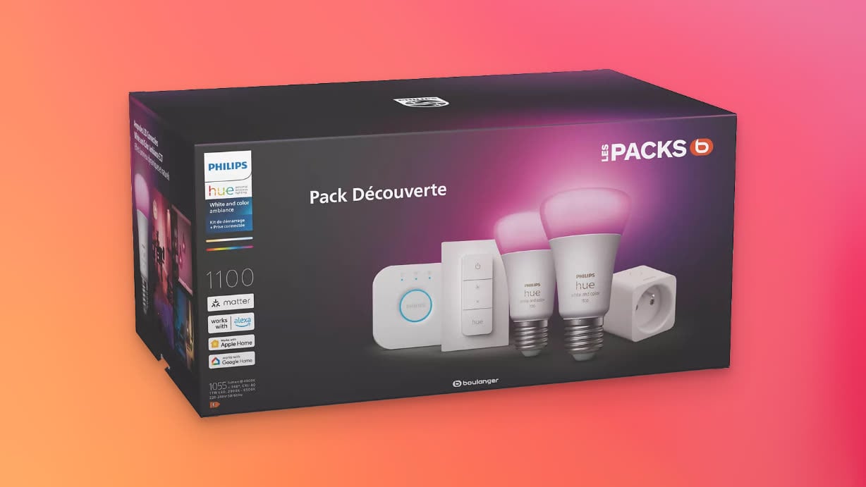 Le Black Friday a commencé chez Boulanger : l’enseigne affiche ce matin une solide remise sur le pack Découverte de Philips Hue. Comportant tout le nécessaire pour bien démarrer, il est facturé 89,99 € au lieu de 199,99 € en temps normal. Cela représente donc 110 € d’économisé pour un achat parfait pour éclairer votre salon ou comme futur cadeau de Noël.