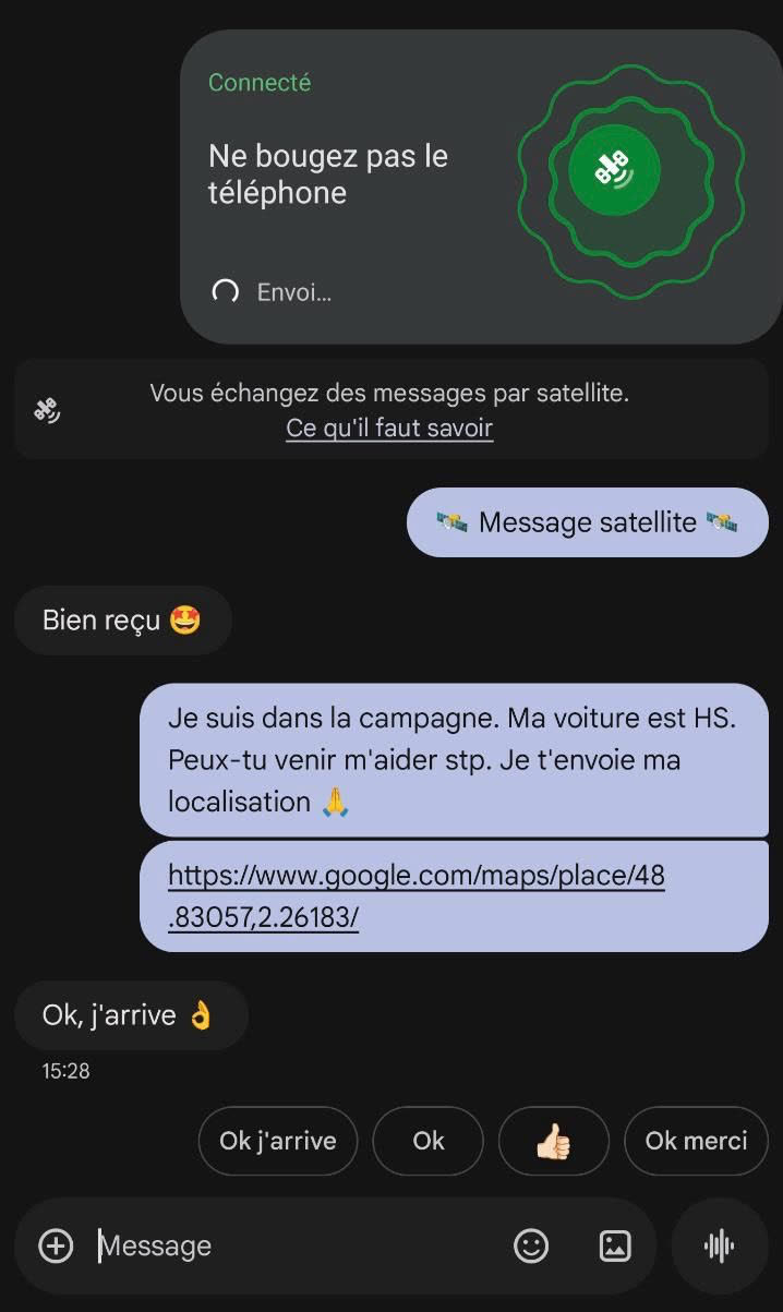 Il faudra prendre quelques habitudes par rapport aux messages classiques, comme le fait d’orienter son téléphone vers le satellite à l’envoi comme pour la réception. Les photos ne seront pas prises en charge, et il y a forcément un peu de latence. Selon Next, qui a pu essayer la nouveauté en avant-première, l’envoi et la réception se font « en quelques secondes ». Ces aspects moins pratiques font qu’on lui préférera sans doute le traditionnel roaming quand il est disponible.