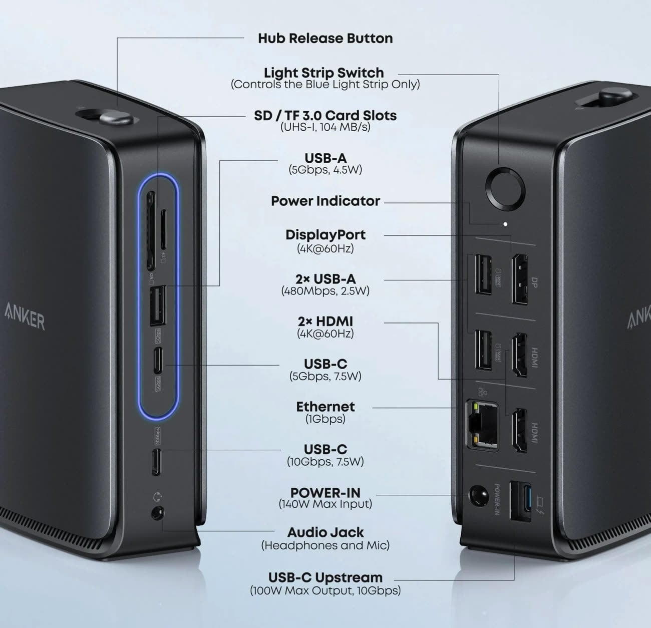 Comme Belkin, Anker profite du CES 2026 pour révéler plein de nouveaux accessoires de charge. Parmi eux, il y a notamment la Nano Docking Station, qui marie deux produits : une station d’accueil fixe et un hub mobile.