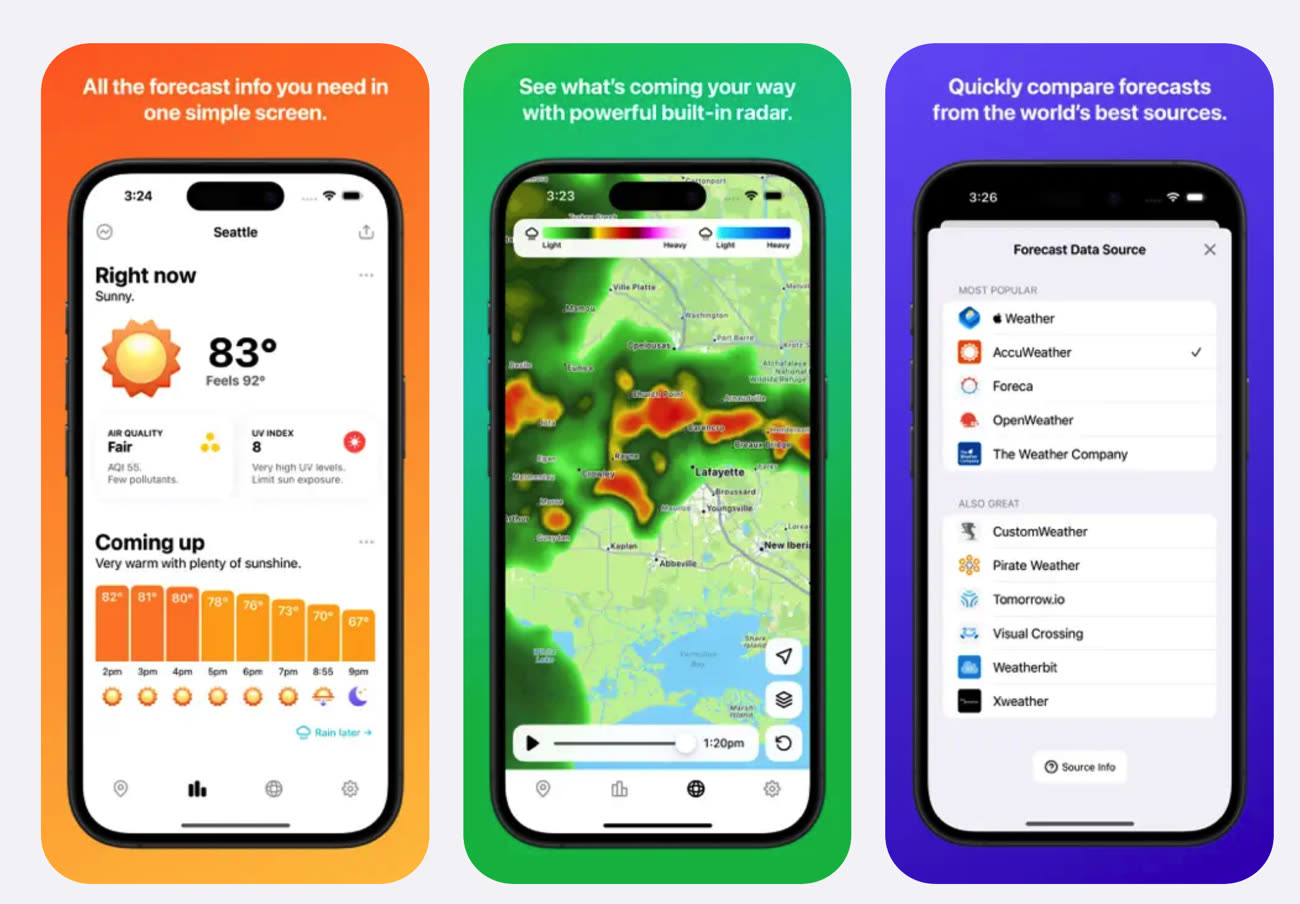 En tant qu’utilisateur, on ne peut que vous recommander l’application Carrot Weather, qui a le mérite de pouvoir jongler entre différents modèles de prévisions. Selon votre position géographique, certains s'avèrent bien plus précis que d'autres. Mais surtout vous avez la possibilité de passer facilement d’un modèle à l’autre pour affiner votre propre jugement sur l'évolution du ciel à venir.