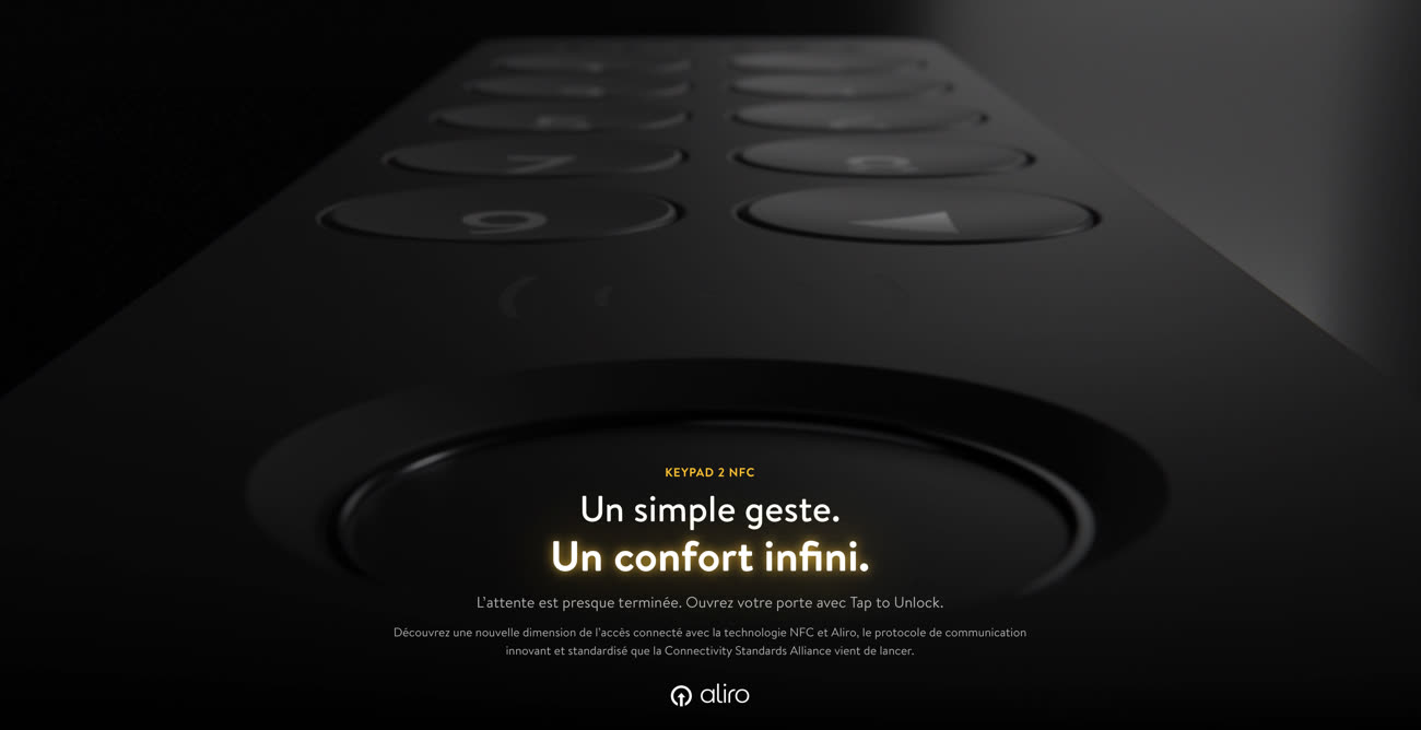 Son futur « Keypad 2 NFC » ressemble à une évolution du pavé numérique actuel de la marque autrichienne, enrichi d’une puce NFC (pas d’UWB a priori, dommage) pour lui apporter la compatibilité avec Aliro. Le site indique que la commercialisation aura lieu le 24 mars 2026 et on n’a pas beaucoup plus d’informations à ce stade. Vous pouvez laisser une adresse mail sur cette page pour recevoir des nouvelles du fabricant.