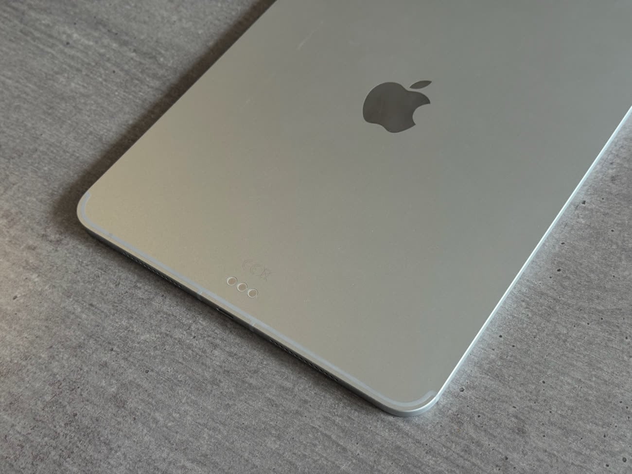 Bref, aucun changement en extérieur, et je serais bien en peine de discerner un modèle M4 d’un M5 si Apple n’avait pas supprimé l’inscription iPad Pro au dos. Les autres petites lignes comme « Designed by Apple in California. Assembled in China » ont également disparu pour laisser un dos nu si l’on excepte le logo CE et de la petite poubelle barrée. C’est plus sobre, et on se demande pourquoi Apple n’y a pas pensé avant.