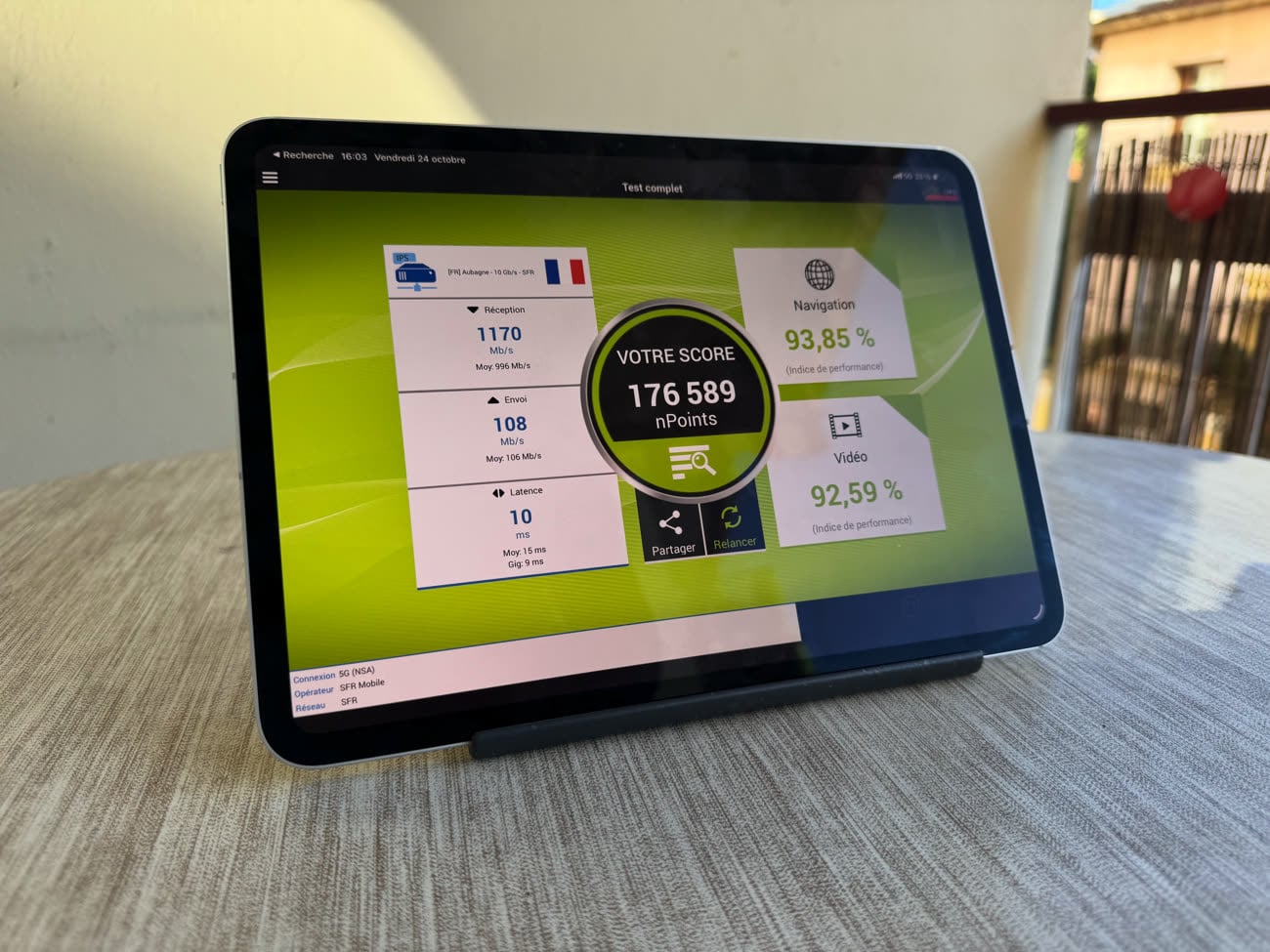 Apple a changé les choses cette année en intégrant sa puce N1, pour le Wi-Fi 7 et le Bluetooth 6. On l’a déjà vu passer dans les iPhone 17, et elle s’en sort très bien sur ce nouvel iPad Pro. Je l’ai testé sur ma simple box Wi-Fi 6 avec nPerf et ai constamment obtenu de meilleurs résultats. Ce n’est pas un écart marqué et je doute que vous le remarquiez au quotidien ou que votre box soit compatible pour le moment, mais c’est un bon point pour la longévité.