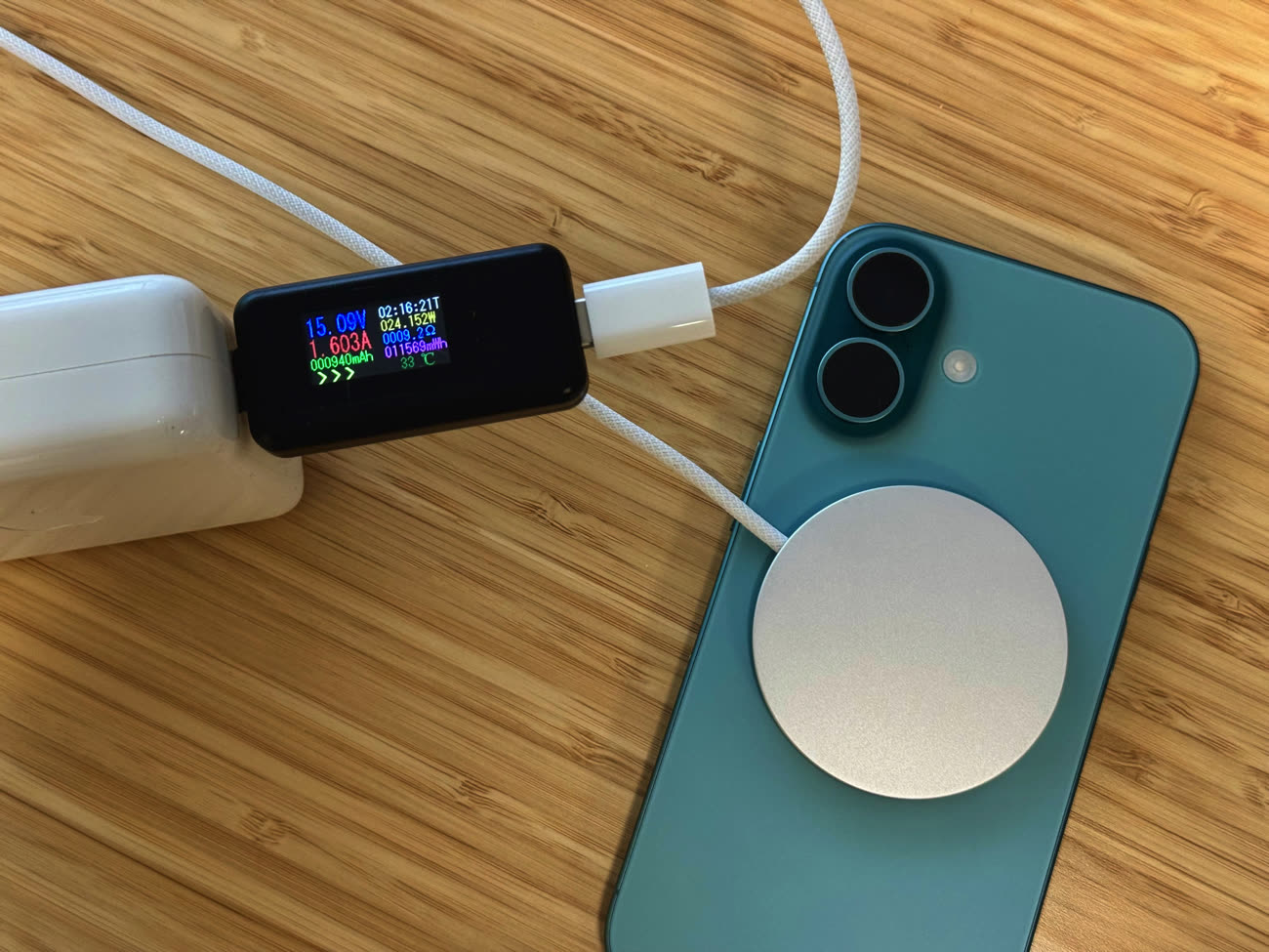 Un iPhone 16 qui charge en MagSafe à près de 25 W. Image iGeneration.