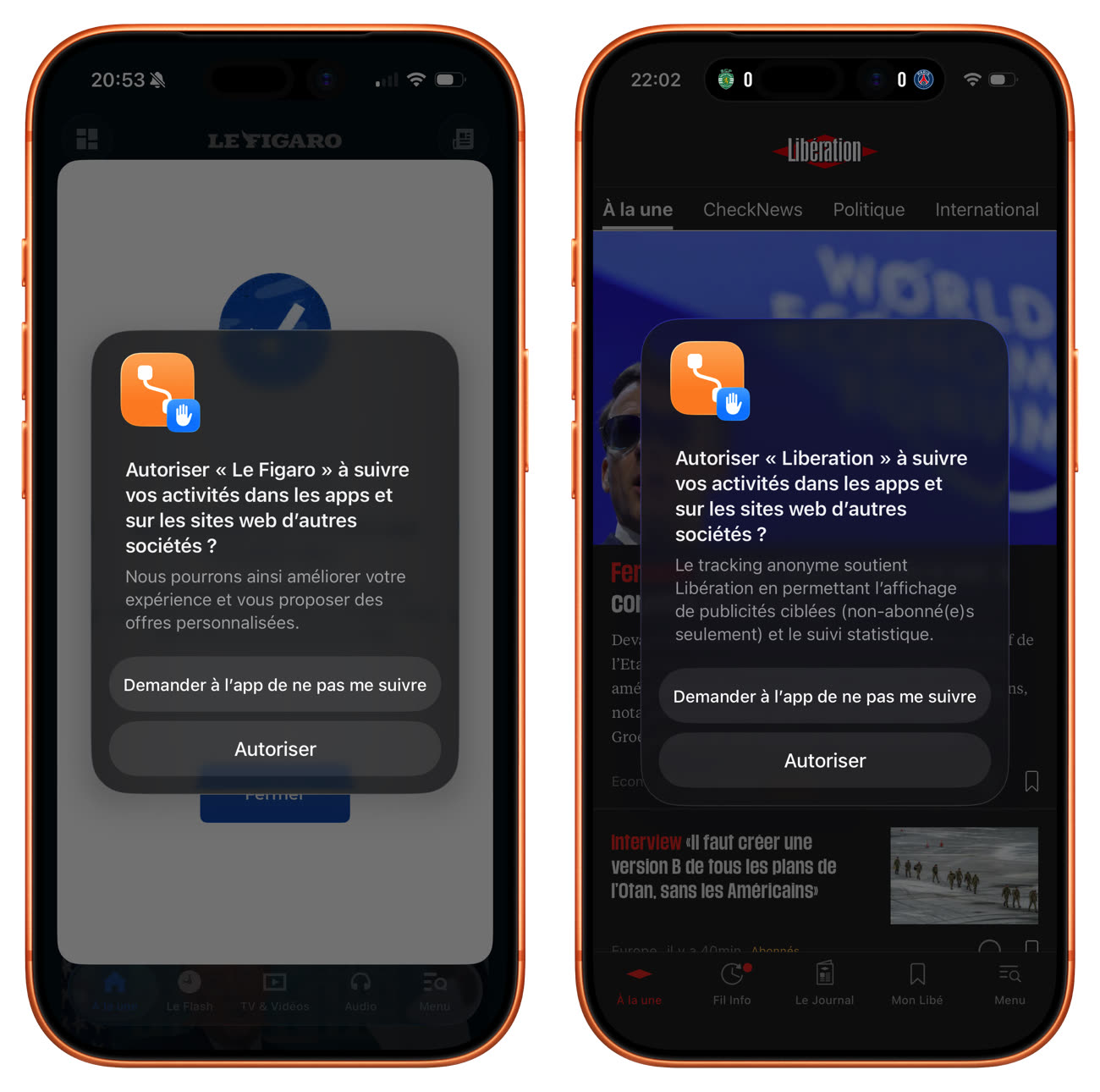 Dans l’affrontement judiciaire qui l’oppose depuis des années à des publicitaires et des éditeurs de presse en France, Apple vient de remporter le match retour. Alors qu’une coalition d’associations professionnelles cherchait à faire interdire le dispositif d’encadrement du pistage en vigueur depuis iOS 14.5, la juge des référés du Tribunal judiciaire de Paris en a décidé autrement. La demande de consentement native d’iOS, qui donne le choix entre « Demander à l’app de ne pas me suivre » ou « Autoriser », peut rester en place.