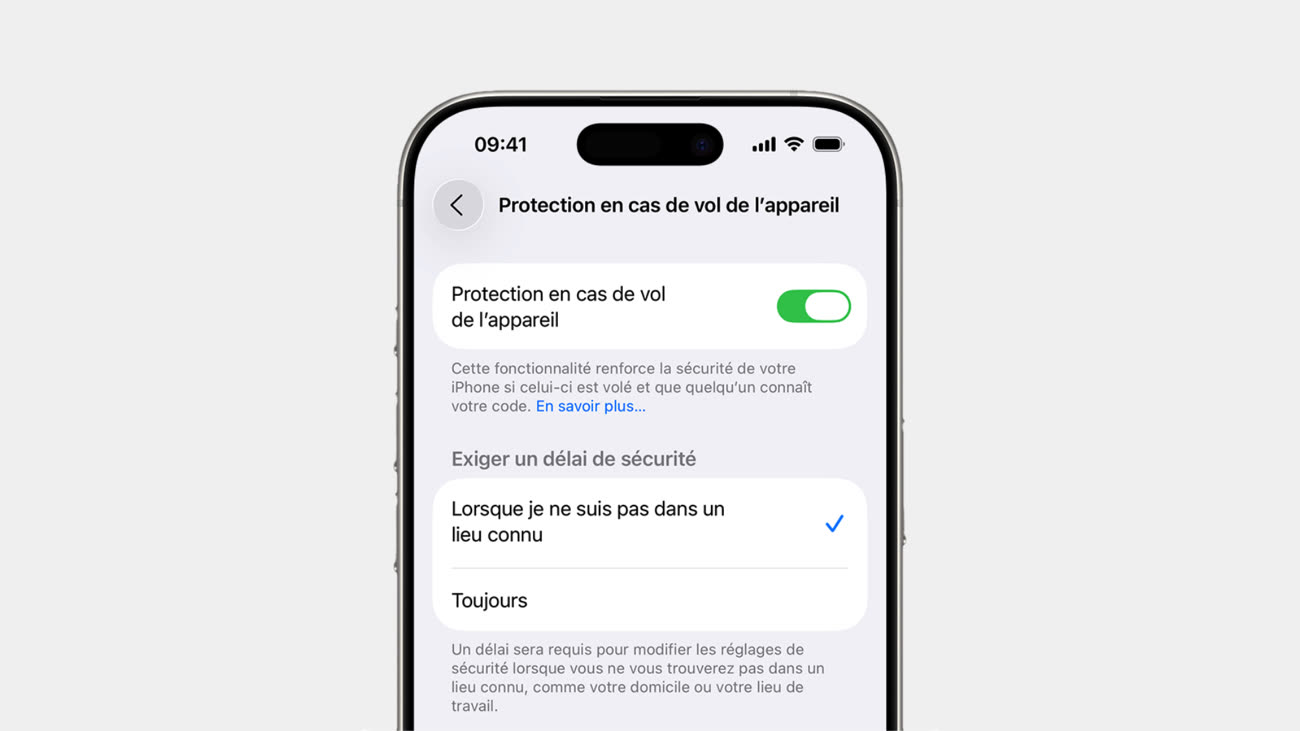 La protection complique certaines manipulations sensibles en dehors d’un lieu connu de l’iPhone. Par exemple, elle impose une authentification biométrique pour réinitialiser un iPhone loin de la maison ou pour changer le mot de passe du compte Apple. Un voleur ne pourra donc pas se contenter d’entrer un code observé un peu plus tôt pour prendre possession de l’appareil.