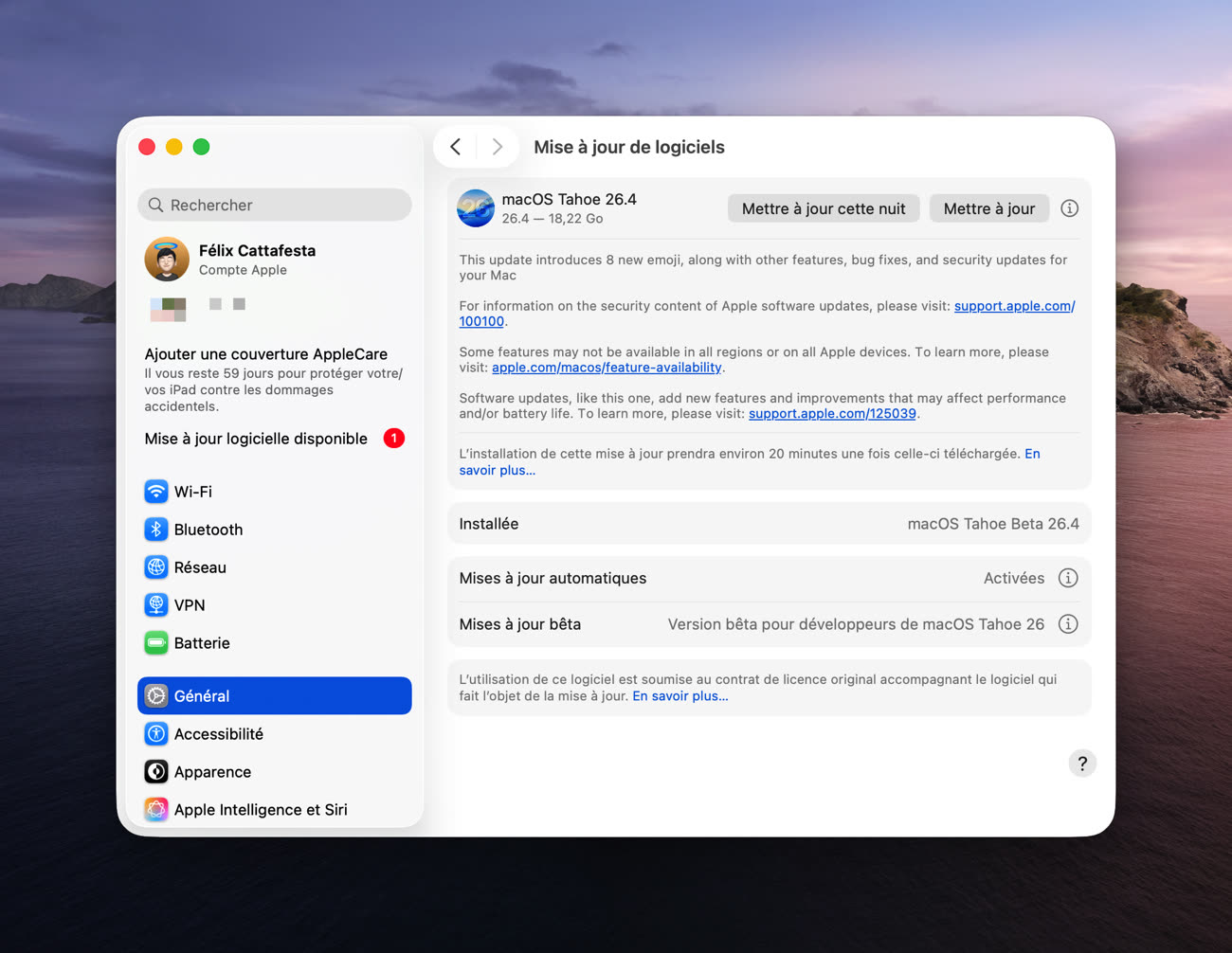 Un ajout qui devrait intéresser le grand public est l’arrivée d’une poignée de nouveaux emojis. On y trouve un coffre au trésor ou encore une trompette, mais aussi une orque, un visage déformé ou un nuage de combat. De plus, macOS laisse désormais définir une limite de recharge de la batterie allant de 80 % à 100 %. On notera un indicateur de fenêtres masquées pour iPadOS 26.4, en plus d’une option pour rogner un peu plus sur Liquid Glass ici et là.
