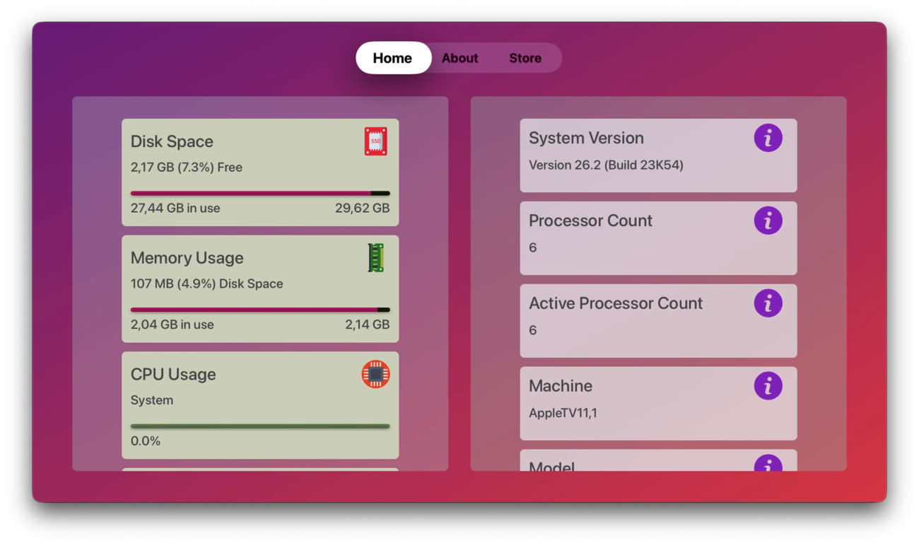 L’Apple TV n’est sans doute pas l’appareil sur lequel on surveille le plus attentivement l’espace de stockage. Néanmoins, si vous avez déjà manqué de place, vous avez peut-être été surpris : tvOS n’indique nulle part la capacité restante. C’est précisément cette lacune que vient combler TV Info.
