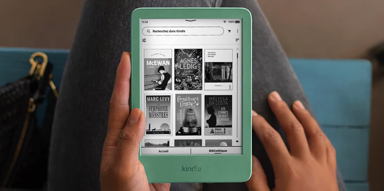 Si vous avez envie d'une liseuse et que vous comptez acheter vos livres sur Amazon — c'est important —, les Kindle sont en promotion. La version de base de la liseuse est 92 € en promotion (au lieu de 110 €) en deux couleurs, vert ou noir. À ce prix, Amazon va ajouter de la publicité sur l'écran de veille, ce qui est parfaitement supportable pour certains… et insupportable pour d'autres. Si vous voulez vous passer de la publicité la version sans réclames est à 100 € au lieu de 120 €. Dans les deux cas, la liseuse est éclairée, se charge en USB-C et dispose de 16 Go de mémoire interne.
