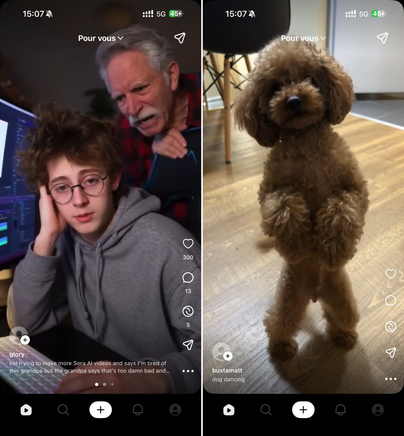 Au delà de la bataille technologique, l’idée est visiblement de proposer des outils pour remplir les flux de nos réseaux sociaux à peu de frais. Facebook ou LinkedIn croulent déjà sous les contenus générés par IA, mais les géants de la tech ne veulent pas s’arrêter là. Preuve en est avec le lancement aujourd’hui d’une application Sora, accompagnant la sortie d’un nouveau modèle et voulant être le réseau social de l'IA signé OpenAI.