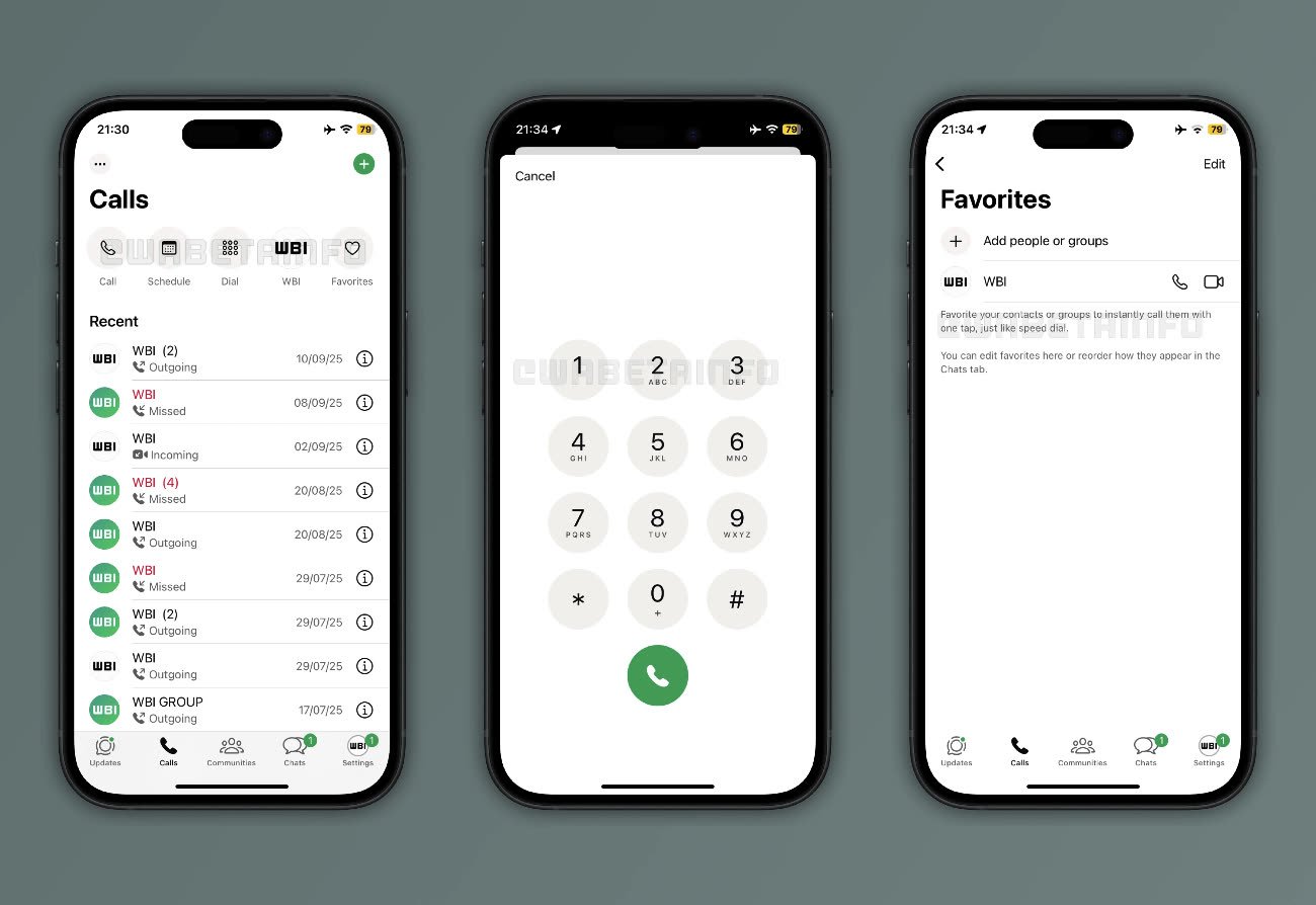 Le site WABetaInfo a remarqué d’autres changements en cours de déploiement avec la version 25.27.73 qui vient de sortir sur iPhone. Certains utilisateurs disposent d’un onglet Appels remanié qui donne accès plus directement à plusieurs fonctionnalités. Des boutons permettent d’ouvrir rapidement le planificateur, le pavé numérique, les favoris ou un contact particulier.