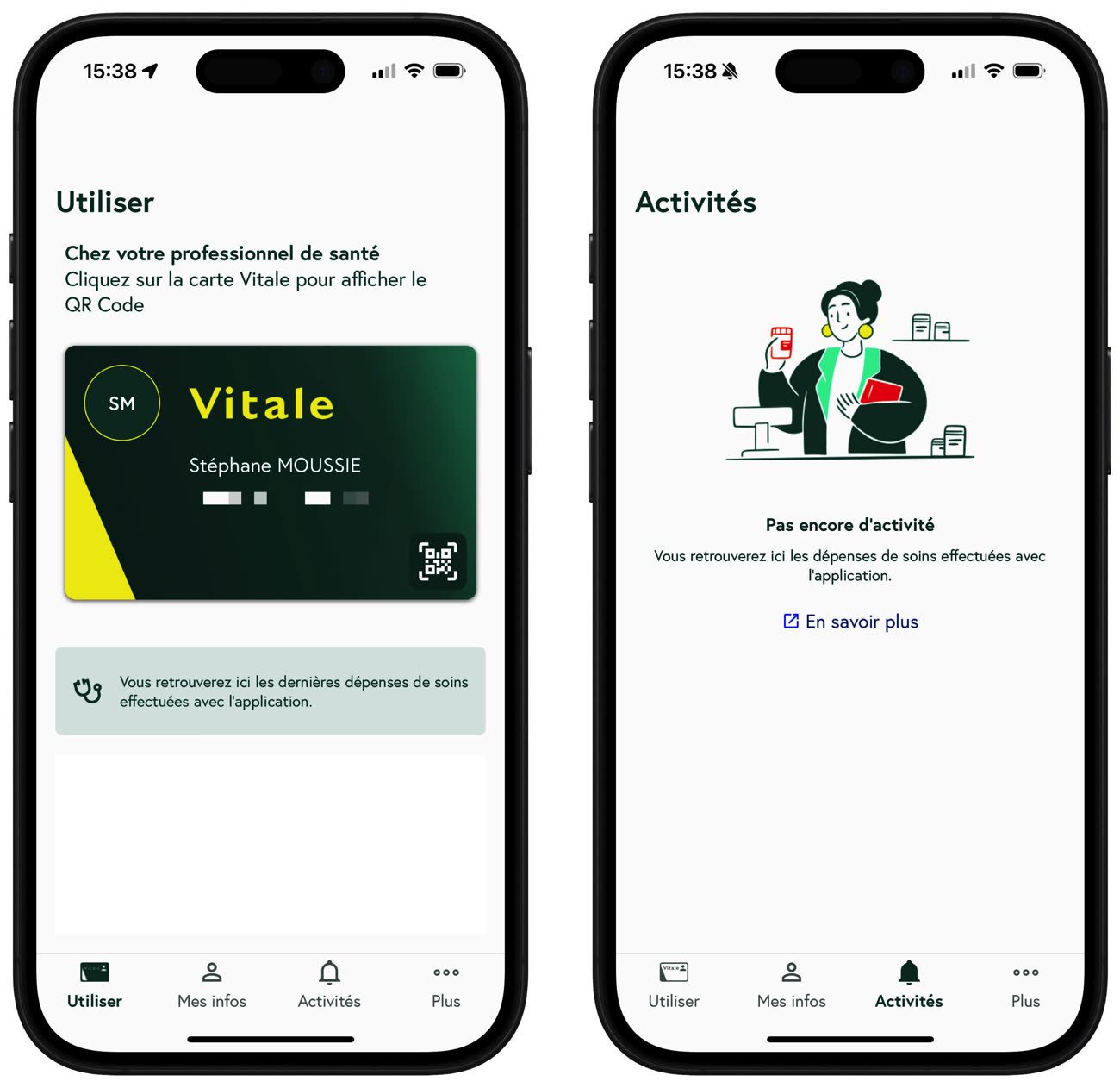 L’app permet principalement de présenter un QR code que l’on pourra montrer à un professionnel de santé. Elle centralise également les dernières dépenses de soins effectués via l’application. Attention, car la photo utilisée pour valider votre carte d’identité à l’inscription apparaît au côté du QR code.