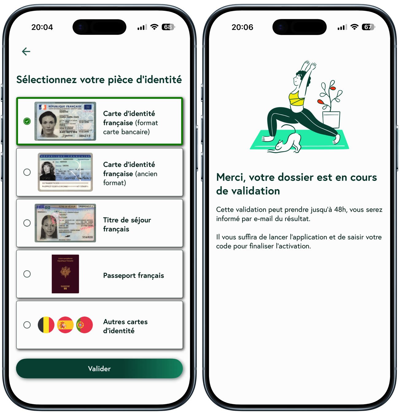 La démarche est assez simple : une fois l’app téléchargée, il vous suffit d’entrer votre numéro de sécurité sociale. Un code sera envoyé par mail à votre compte Ameli. Ne reste plus qu’à vérifier votre identité en prenant plusieurs photos d’un document officiel (CNI nouvelle ou ancienne, passeport, titre de séjour…), puis de votre visage. Le dossier est censé être validé dans les 48 heures, mais j’ai immédiatement reçu un mail me permettant d’en profiter.