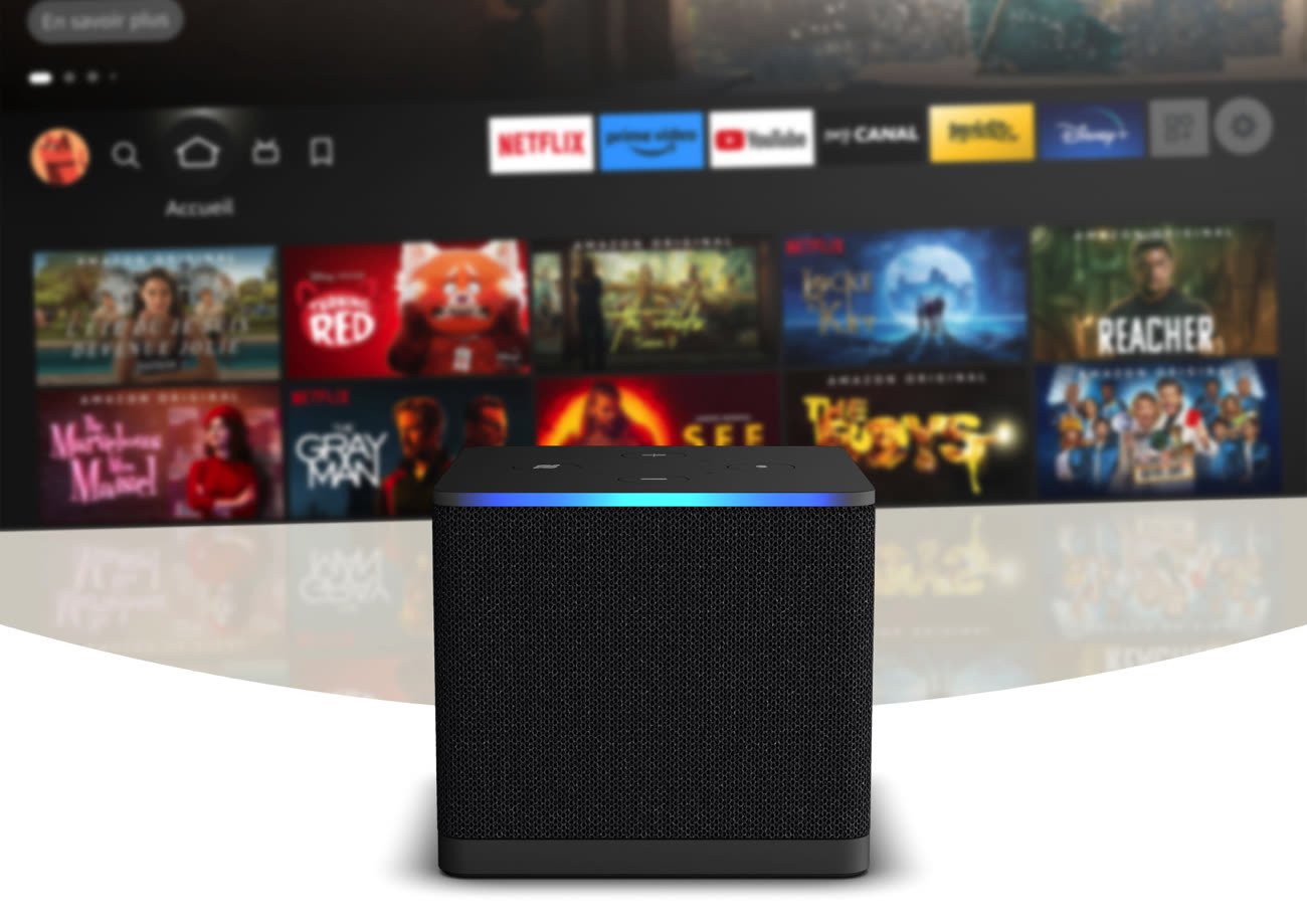 Pour finir, le Fire TV Cube est lui aussi en promotion à 110 € au lieu de 160. On abandonne cette fois le format clé HDMI au profit d’un cube (d’où le nom) à poser quelque part autour du téléviseur, comme l’Apple TV. En contrepartie, on gagne un port Ethernet, même si le Wi-Fi 6E est aussi présent, et surtout une enceinte qui le transforme en appareil Alexa autonome, sans dépendre de la télé pour fonctionner. Pour le reste, il reprend toutes les caractéristiques techniques du Fire TV Stick 4K Max, tout en intégrant un processeur plus puissant encore.