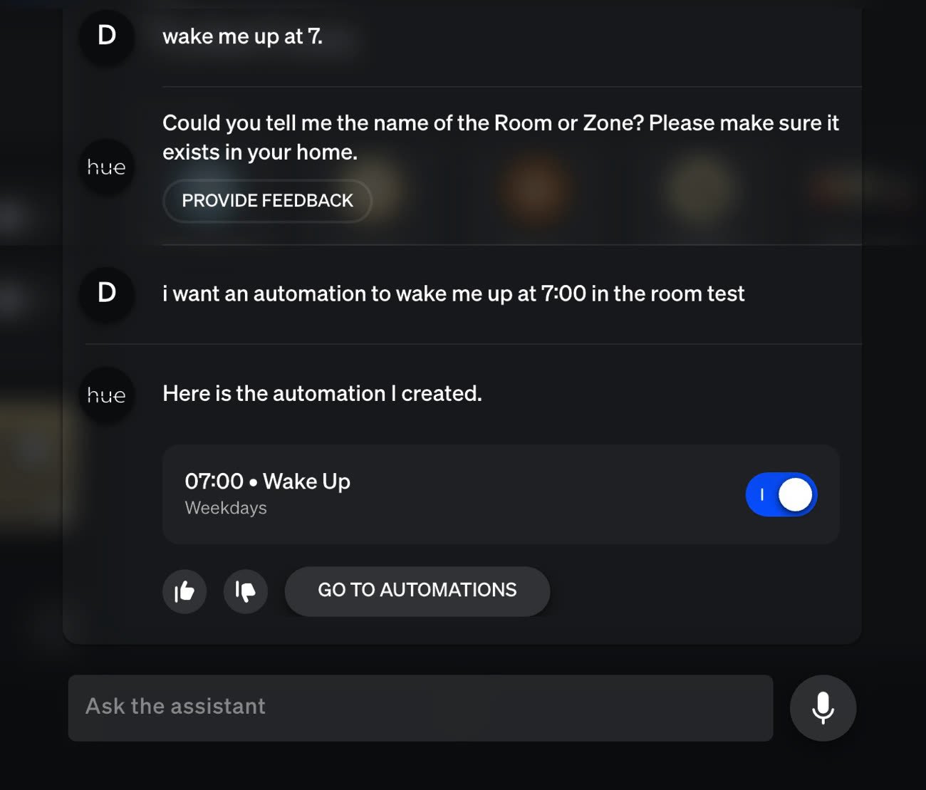 La nouvelle version de l'app Hue (5.55.0) intègre un assistant IA, et il gagne une fonction : la création d'automatisation. L'assistant lui-même est disponible depuis quelques mois (et a été annoncé en janvier), mais il n'est accessible qu'en anglais pour le moment.