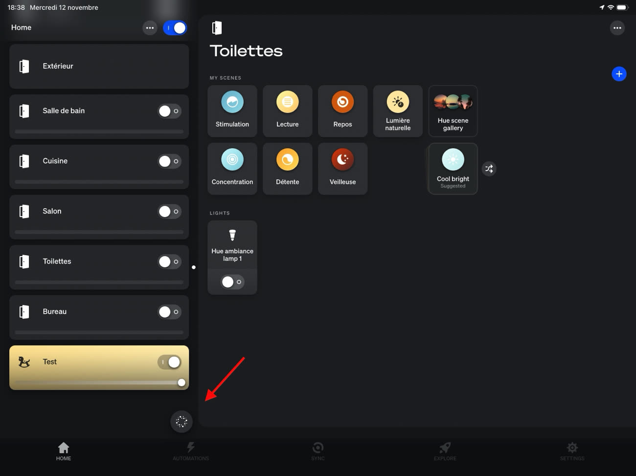 Une fois la langue modifiée, vous verrez une icône spécifique dans un coin de l'écran, qui permet d'accéder à l'assistant IA. Avec cette nouvelle version de l'app Hue, donc, il est possible de lui demander de créer une automatisation. Nous avons testé rapidement en lui réclamant une idée simple (être réveillé à 7 h du matin dans une pièce) et il a bien créé l'automatisation. Si vous mettez par exemple uniquement que vous voulez une heure précise, il vous demande dans quelle pièce elle doit être mise en place.