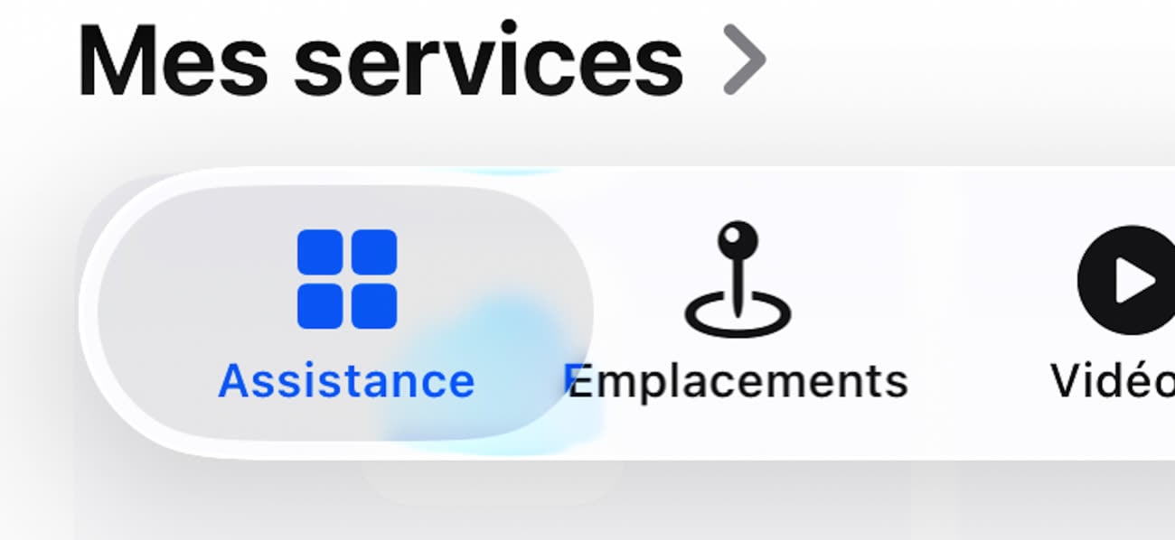 Le Liquid Glass ne réussit toutefois pas complètement à cette application. Sur certains iPhone, l’effet de zoom crée un petit débordement visuel : une portion d’une section voisine (le « E » d’« Emplacement ») se retrouve englobée dans la goutte d’eau, ce qui rompt l’harmonie. Ce n’est d’ailleurs pas un cas isolé, l’application Musique présente la même imperfection sur certains modèles.