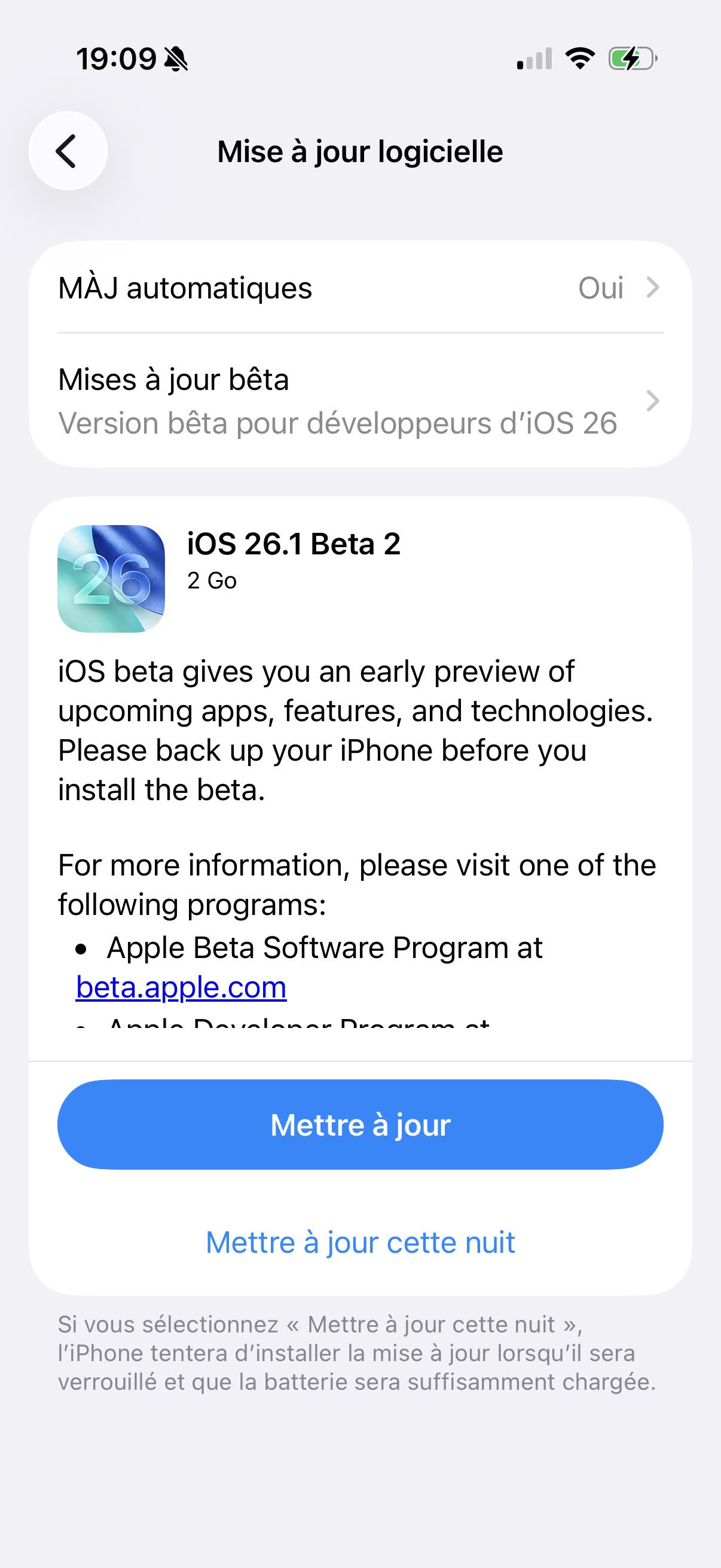 Deux semaines pile après la première vague, Apple distribue la deuxième bêta d’iOS 26.1, iPadOS 26.1, macOS 26.1, watchOS 26.1, tvOS 26.1 et visionOS 26.1 (pfou). On verra dans la soirée si ces mises à jour apportent de grosses nouveautés ou s’il s’agit uniquement de corriger des bugs.