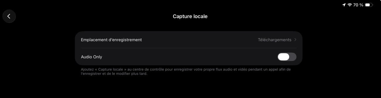 Enfin, la bêta ajoute un réglage supplémentaire pour l’enregistrement audio local avec un micro externe, une fonction arrivée avec iOS 26. Une rubrique est apparue dans l’onglet Général des Réglages. Nommée Capture locale, elle permet de choisir l’emplacement des fichiers et de limiter la capture à l’audio uniquement. Ceux l’utilisant régulièrement pourront ajouter un raccourci dans le Centre de contrôle.