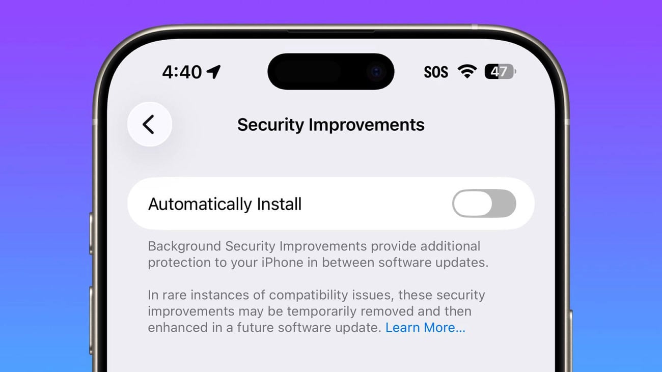 Peu exploitée jusqu’ici, elle laisse place avec iOS 26.1 à un nouveau système baptisé Background Security Improvements, qui vise à appliquer automatiquement ces correctifs en arrière-plan. Ces mises à jour seront installées de manière transparente pour l'utilisateur, sans que l'iPhone ait besoin de redémarrer.