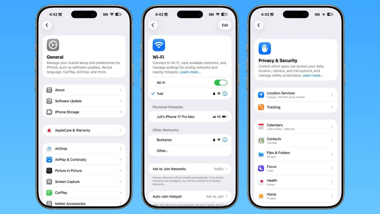 Apple a modifié l’alignement des icônes et du texte dans l’app Réglages. Les sections comportant un en-tête avec du texte affichent désormais ce dernier aligné à gauche, alors qu’il était auparavant centré.